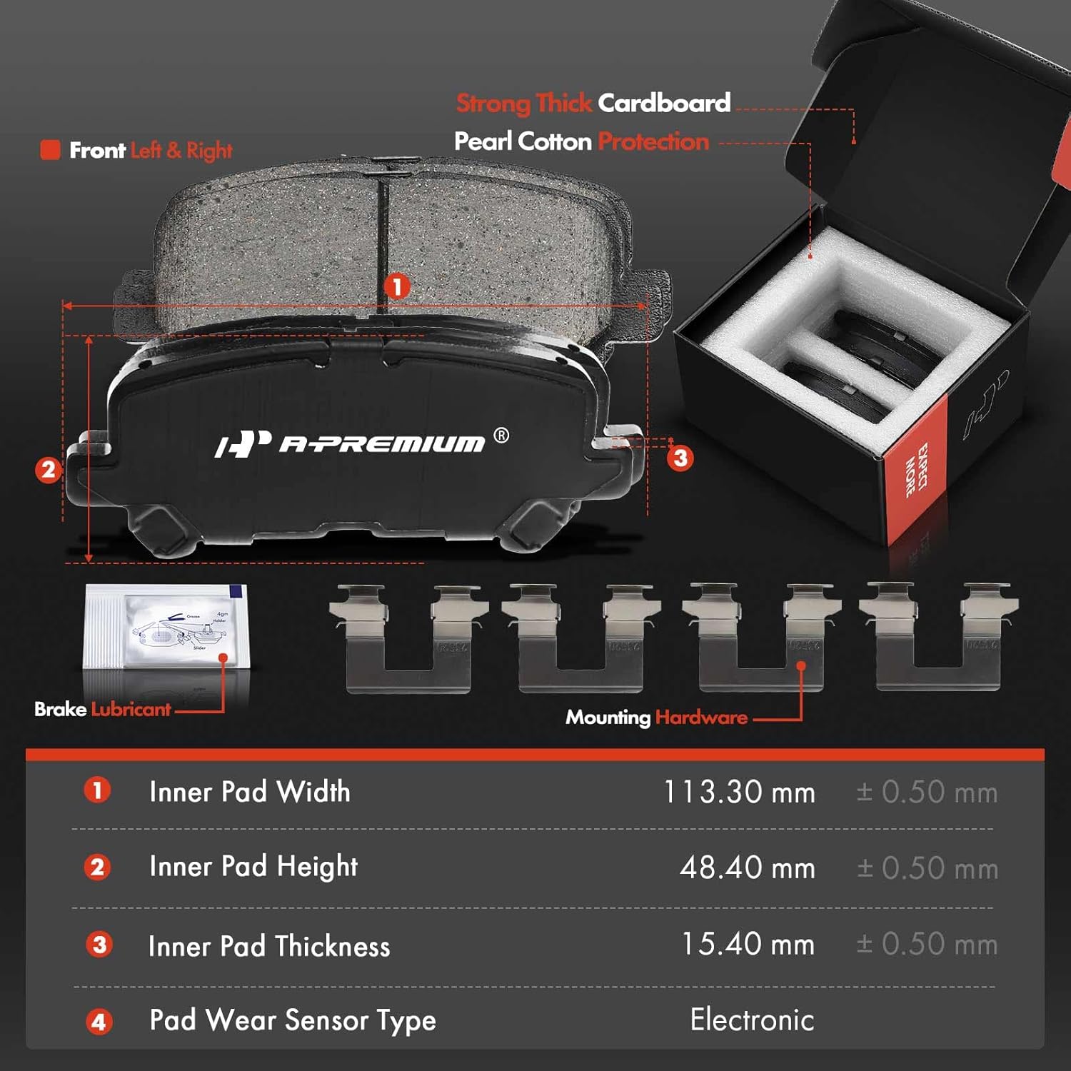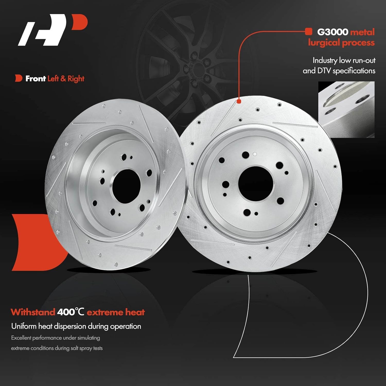 Descrição do Produto: A-Premium 13.15 inch (334mm) Rear Drilled and Passenger Disc Brake Rotors Ceramic Pads Kit