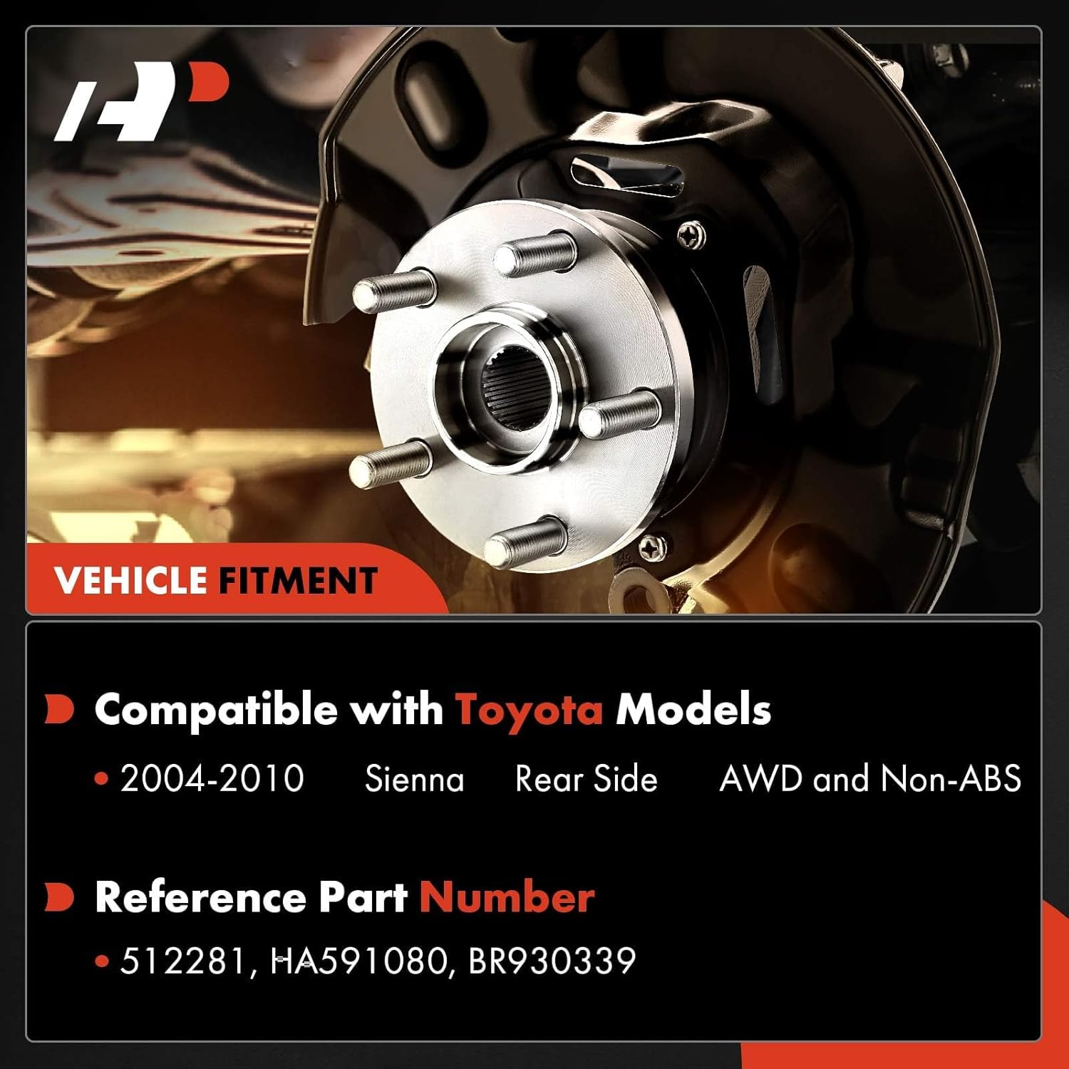 Descrição do Produto: A-Premium 2 x Conjunto de Rolamento e Cubo de Roda Traseiro com 5 Furos Compatível com Toyota Sienna 2004-2010, AWD e Não-ABS