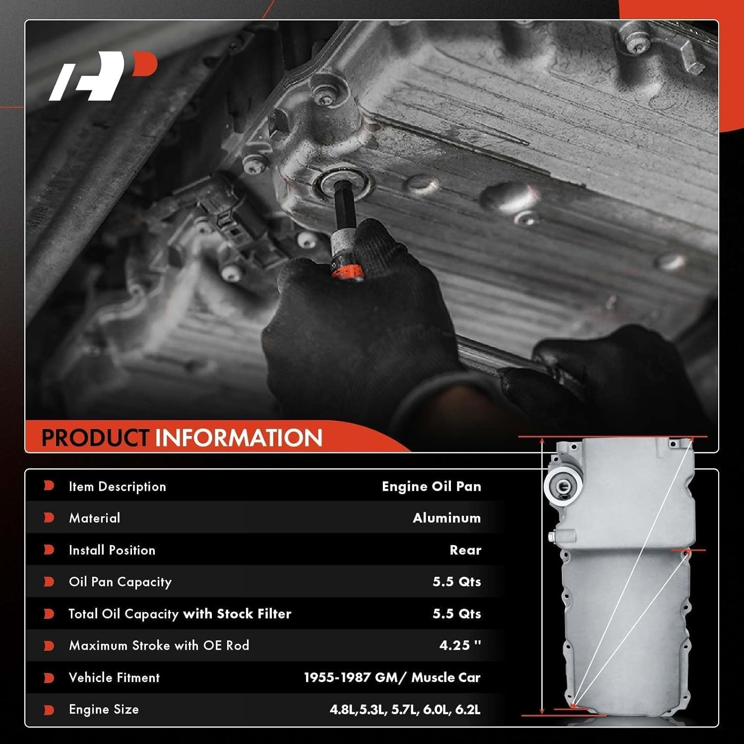 O pacote inclui todos os componentes necessários para uma instalação completa e eficiente: um cárter de óleo, uma junta de cárter, um defletor de cárter, um tubo de captação, um plugue de cárter, um suporte para filtro de óleo, uma tampa de passagem de óleo, um O-ring e os parafusos necessários. Com uma capacidade total de óleo que varia de 5.5 quarts (padrão) a 6.0 quarts (com filtro de óleo original), este cárter é projetado para se adaptar a diferentes comprimentos de curso do virabrequim, suportando até 4.25 polegadas, garantindo um encaixe OEM e uma montagem adequada do filtro de óleo.