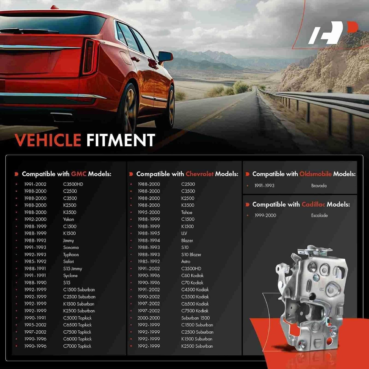 Purchased for 97 C1500 Passenger side door. Works Good. Price is good. Grease through out the latch before installing. Item: A-Premium Front Right Door Lock Latch Assembly Compatible with Cadillac Chevrolet.