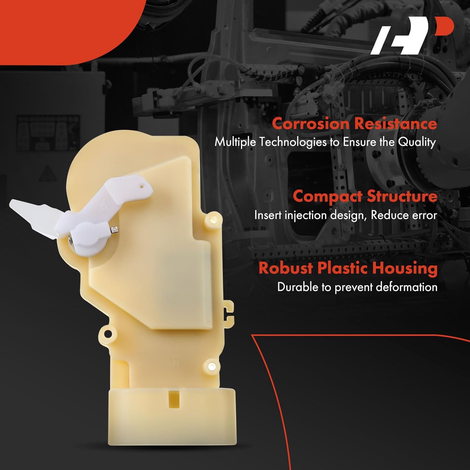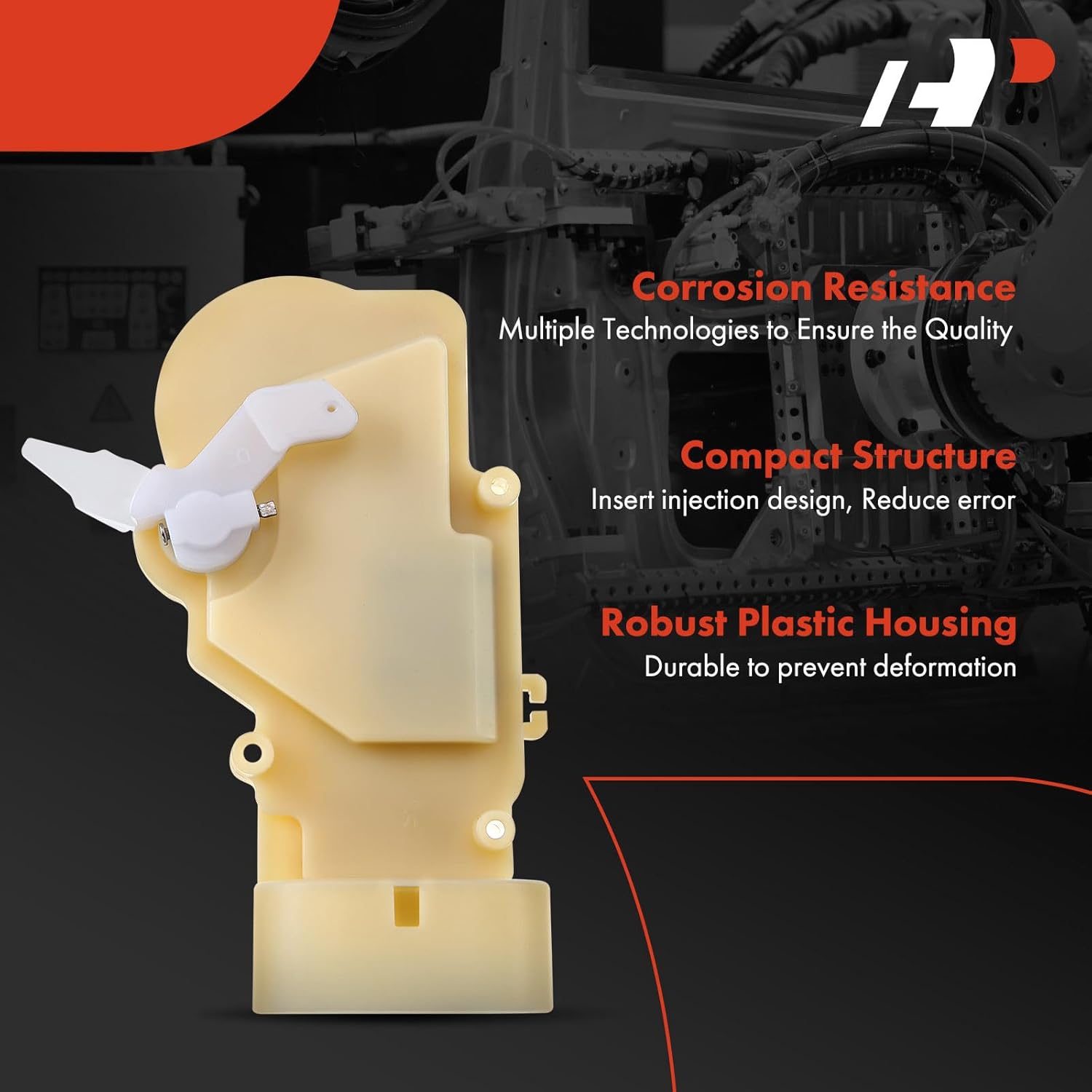 - [Função]: O atuador de travamento de porta A-Premium é fabricado em plástico resistente e metal de alta densidade, o que melhora a durabilidade e a confiabilidade do produto. O design de primeira linha e as tecnologias aplicadas ao atuador garantem que ele atenda ou até mesmo exceda as especificações OE, prevenindo deformações. Substitua o conjunto de travamento da porta para restaurar as funções normais de travamento, resolvendo problemas de bloqueio e desbloqueio e controlando a porta do seu carro de forma sensível.
