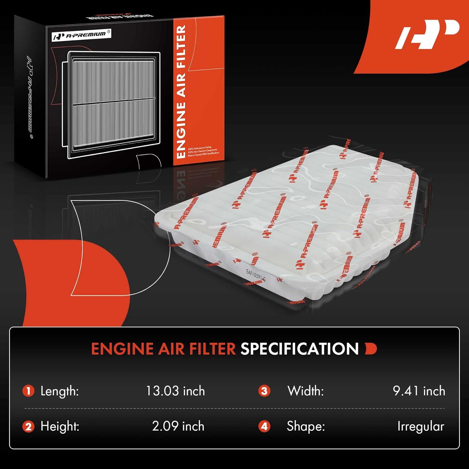O Filtro de Ar do Motor A-Premium é a escolha ideal para quem busca desempenho e eficiência para seu veículo. Compatível com modelos Chevrolet Caprice de 2011 a 2017 (3.6L e 6.0L) e SS de 2014 a 2017 (6.2L), além do Pontiac G8 de 2008 a 2009 (3.6L, 6.0L e 6.2L), este filtro apresenta um design de painel rígido que garante uma filtragem superior.