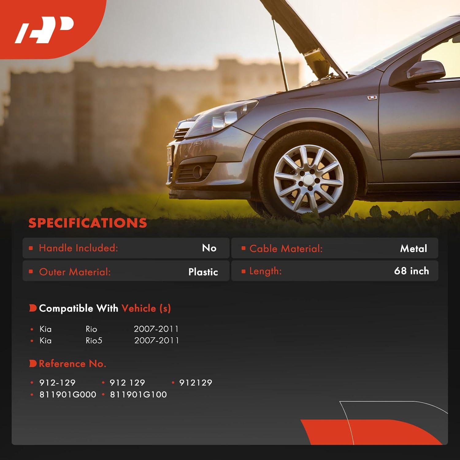 • [Número de Referência]: 912-129, 912129, 811901G000, 811901G100 – Por favor, insira as informações do seu veículo no canto superior esquerdo da listagem e verifique nossa “Nota Especial” antes de encomendar o cabo de liberação do latch do capô.