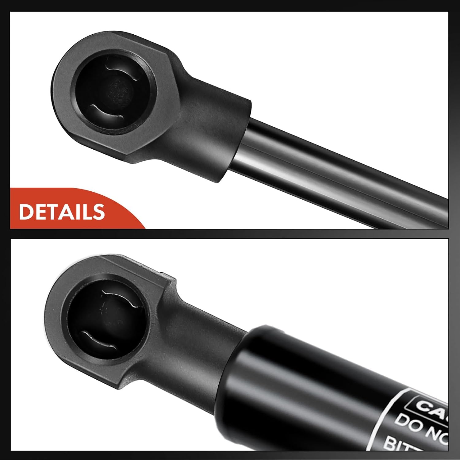 - [Directly Fit]: Suportes de elevação de substituição OE, se encaixam diretamente. Instalação fácil, sem necessidade de ferramentas especiais. Selos de pistão de alta resistência à vazamento; Acabamento superior da haste resiste à corrosão; Levantamento fácil e redução do esforço de fechamento.