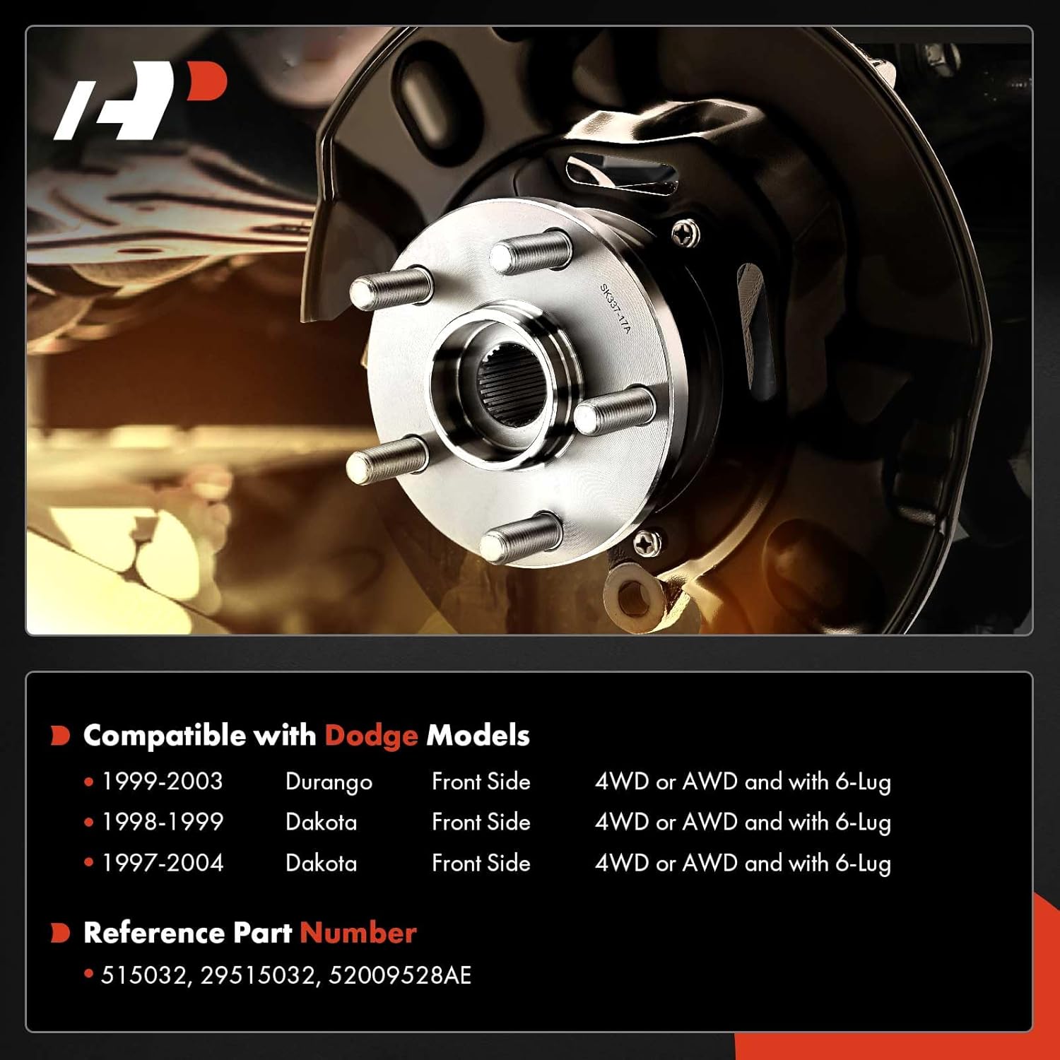 Descrição do Produto: A-Premium Conjunto de Rolamento e Cubo de Roda Dianteiro com 6 Furos Compatível com Dodge Dakota 1997-2004, Durango 1999-2003, RWD