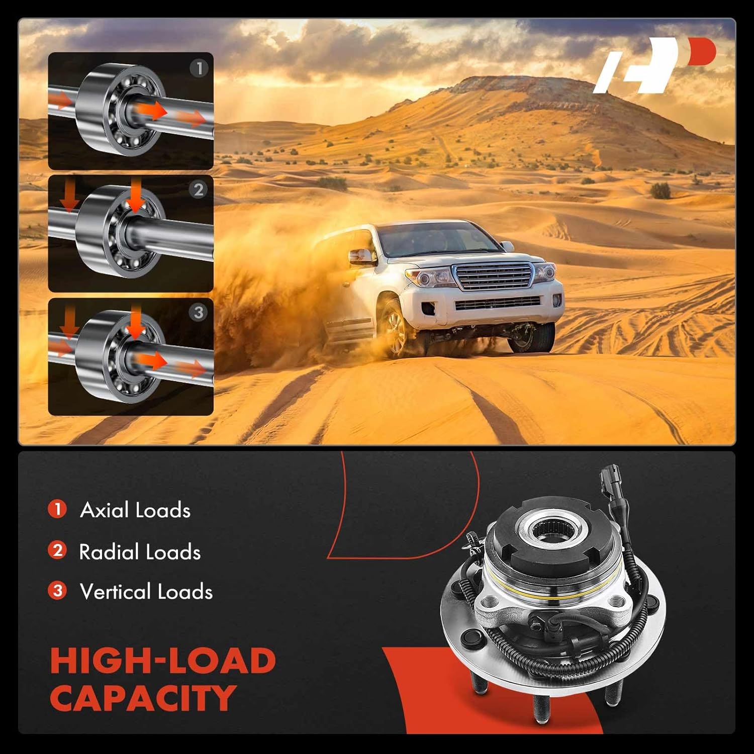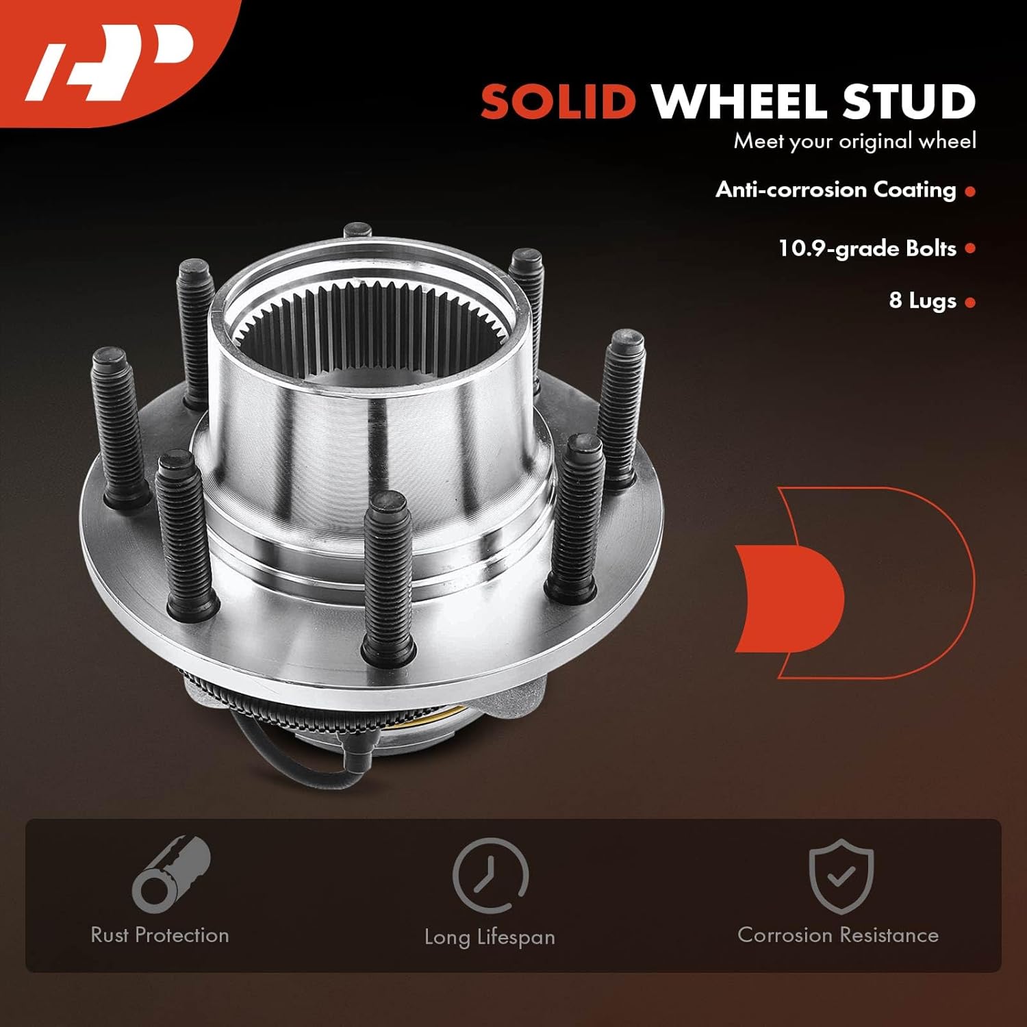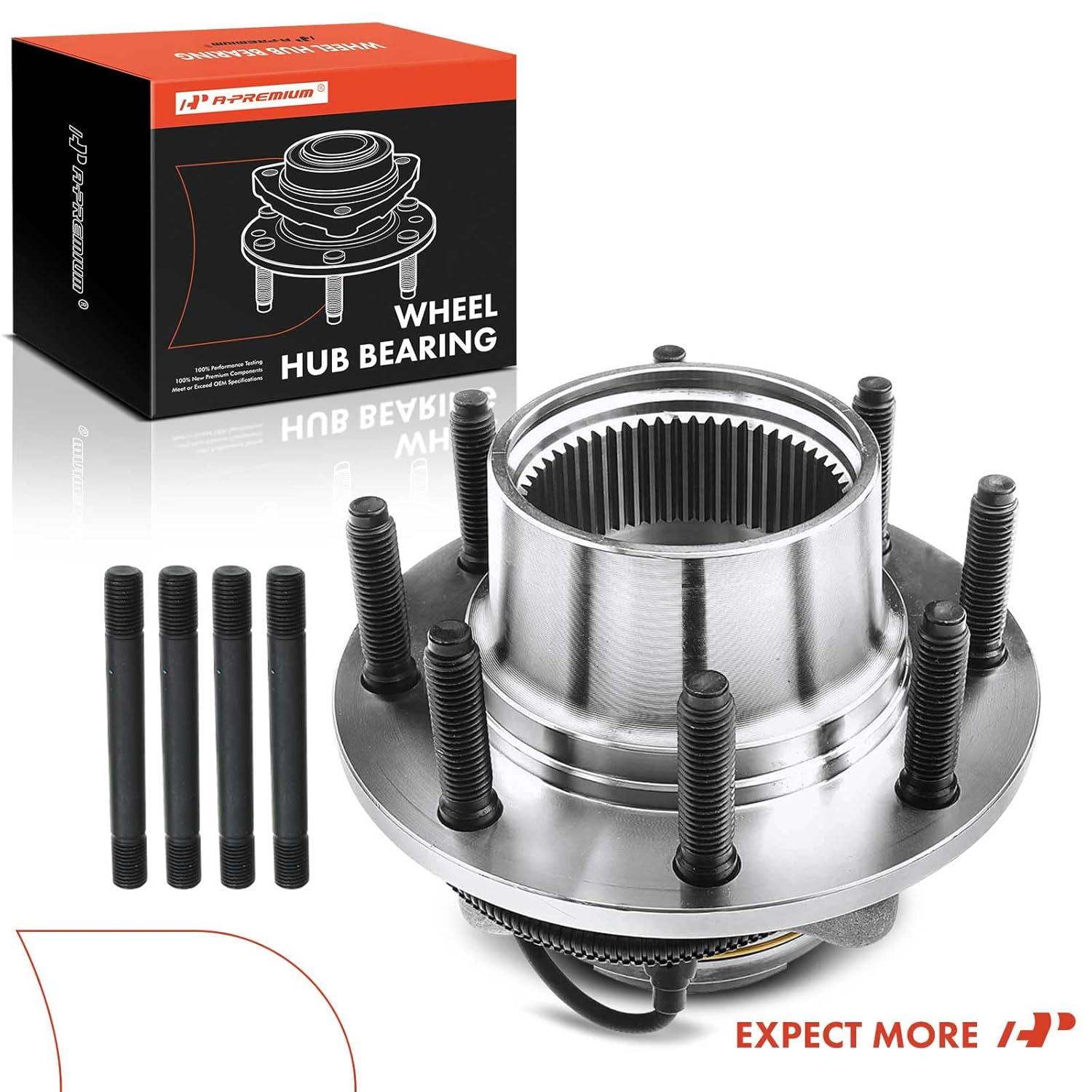 O conjunto de rolamentos e cubo de roda A-Premium é equipado com rolamentos de rolos que oferecem uma capacidade de carga axial e radial ideal para as condições de condução diárias. Os pinos das rodas são fabricados em aço resistente, com especificações idênticas às originais, garantindo um encaixe perfeito no disco de freio, roda e porcas, fazendo com que o conjunto de rolamentos antigo e enferrujado pareça novo.