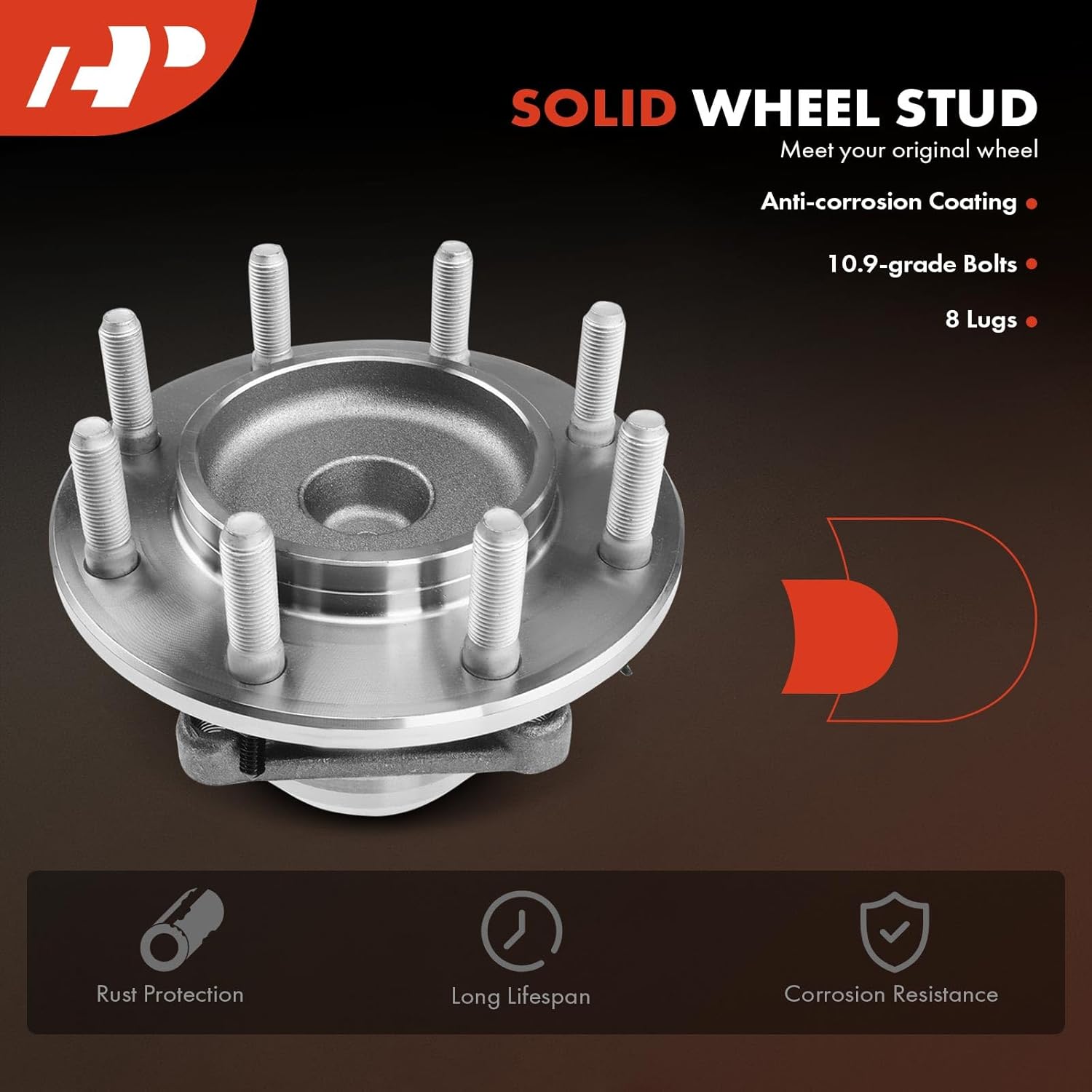 Alta Capacidade de Carga: O conjunto de rolamentos e cubo de roda A-Premium é equipado com rolamentos de rolos, que garantem uma capacidade de carga axial e radial perfeita, ideal para as condições diárias de condução. Os pinos das rodas são fabricados em aço resistente, com especificações idênticas às originais, permitindo que se encaixem perfeitamente no disco de freio, roda e porcas, fazendo com que o conjunto de rolamentos antigo e enferrujado pareça novo.