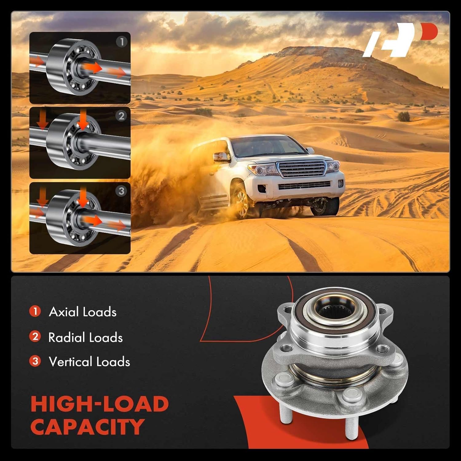 [Alta Capacidade de Carga]: O conjunto de rolamentos e cubo de roda A-Premium é equipado com rolamentos de esferas que oferecem uma capacidade de carga axial e radial excepcional, ideal para as condições diárias de condução. Os pinos de roda são fabricados em aço resistente, com especificações idênticas às originais, garantindo que se encaixem perfeitamente no disco de freio, roda e porcas, fazendo com que o conjunto de rolamentos antigo e enferrujado pareça novo.