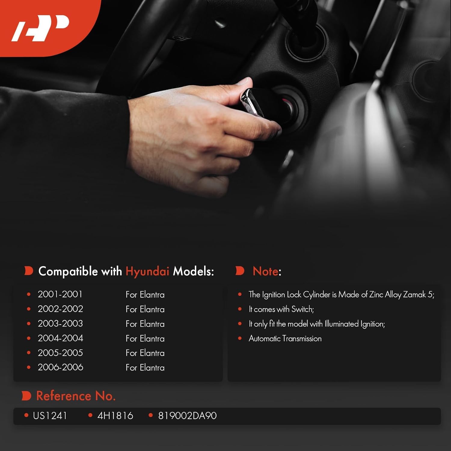 – Compatível com Hyundai Elantra 2001-2006: Este cilindro é adequado apenas para modelos com ignição iluminada e transmissão automática, não sendo compatível com transmissões manuais.