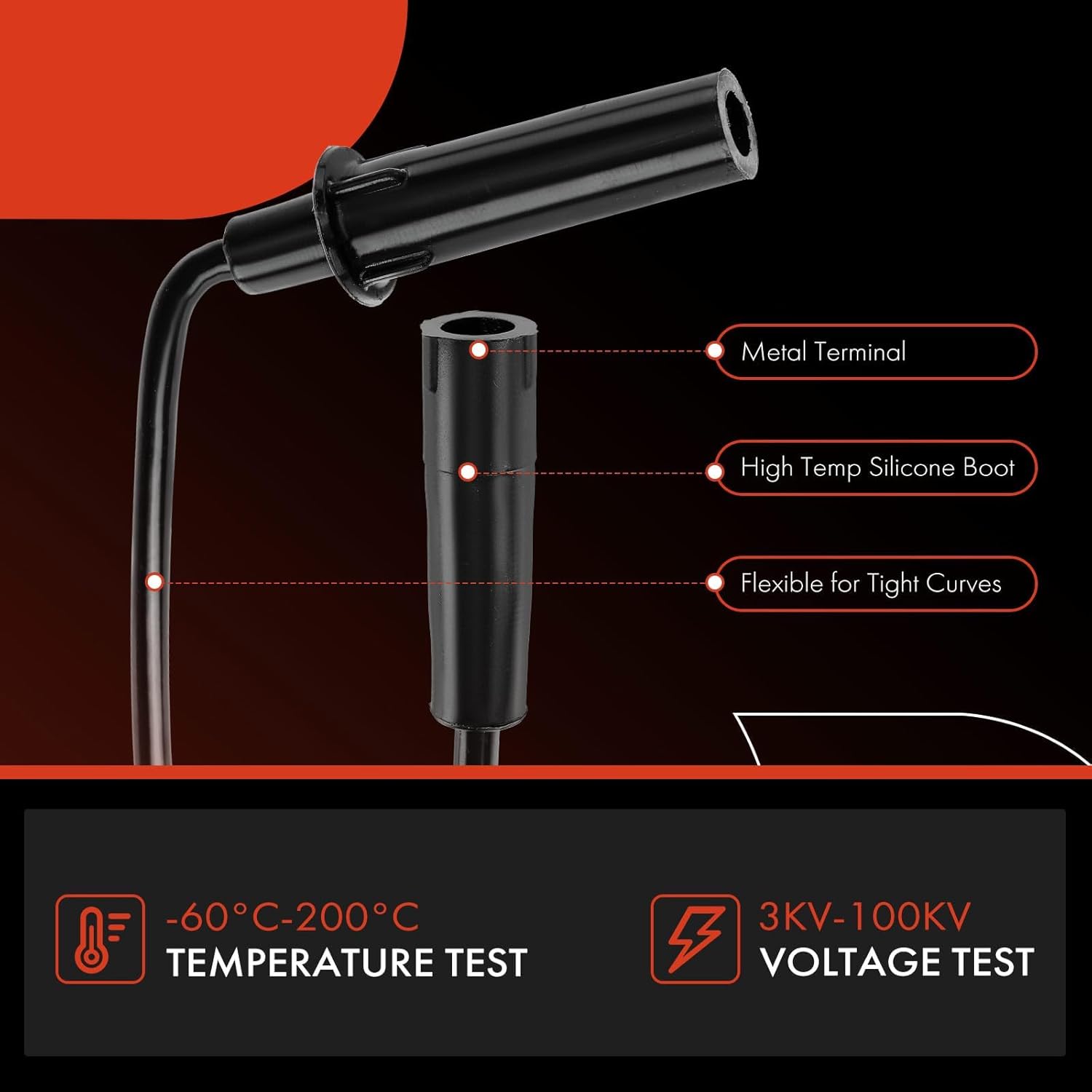 Os fios de vela A-Premium são projetados com um núcleo de cobre que garante uma condução elétrica superior, enquanto as capas de silicone e a trança de fibra de vidro proporcionam resistência e durabilidade excepcionais. Este conjunto é uma substituição direta das peças originais do fabricante (OEM), facilitando a instalação e garantindo um ajuste perfeito. Com materiais de alta qualidade, os fios de vela A-Premium são feitos para durar, oferecendo um desempenho consistente ao longo do tempo.