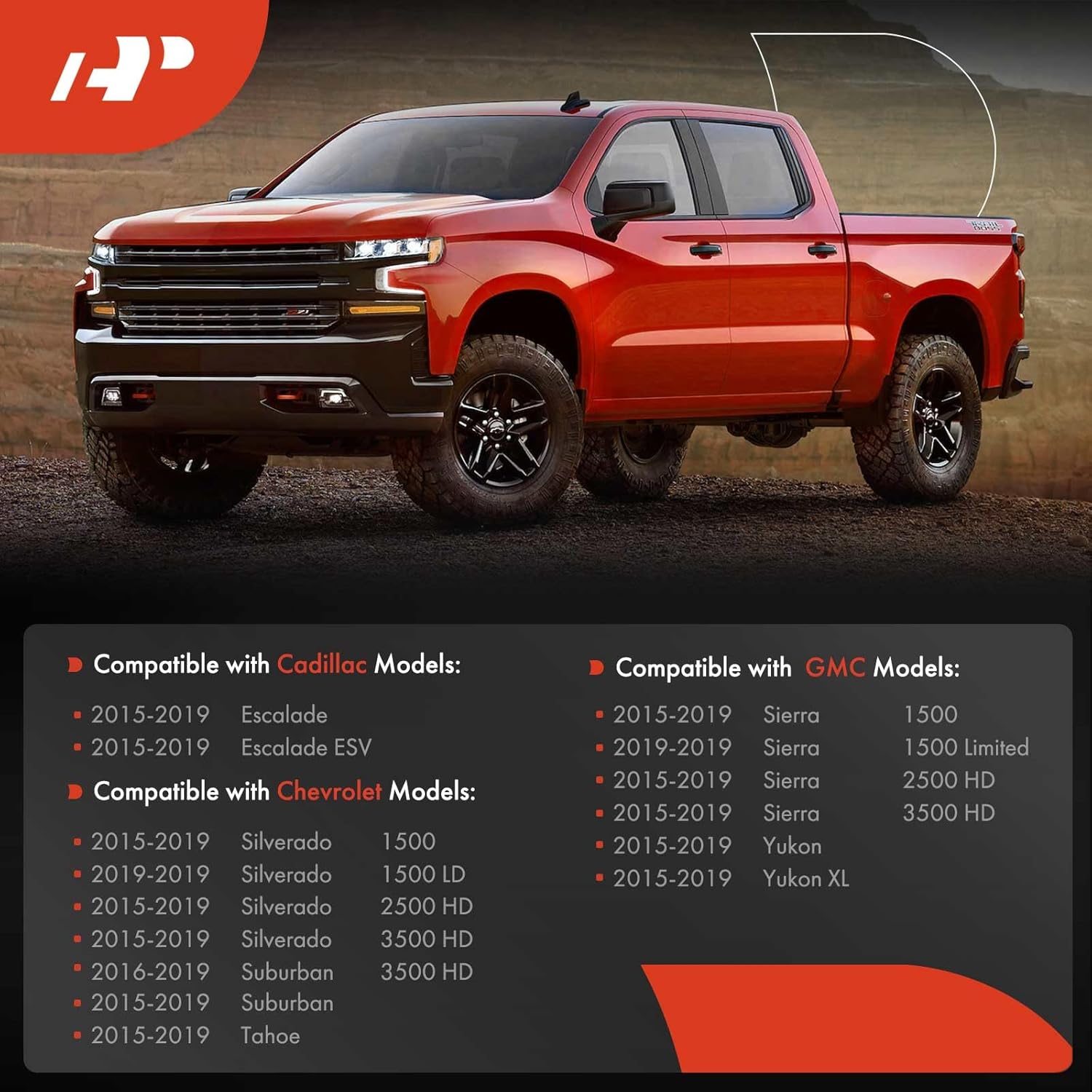 – Compatibilidade: Projetado para Cadillac Escalade, Chevrolet Silverado, Suburban e GMC Sierra de 2015 a 2019.