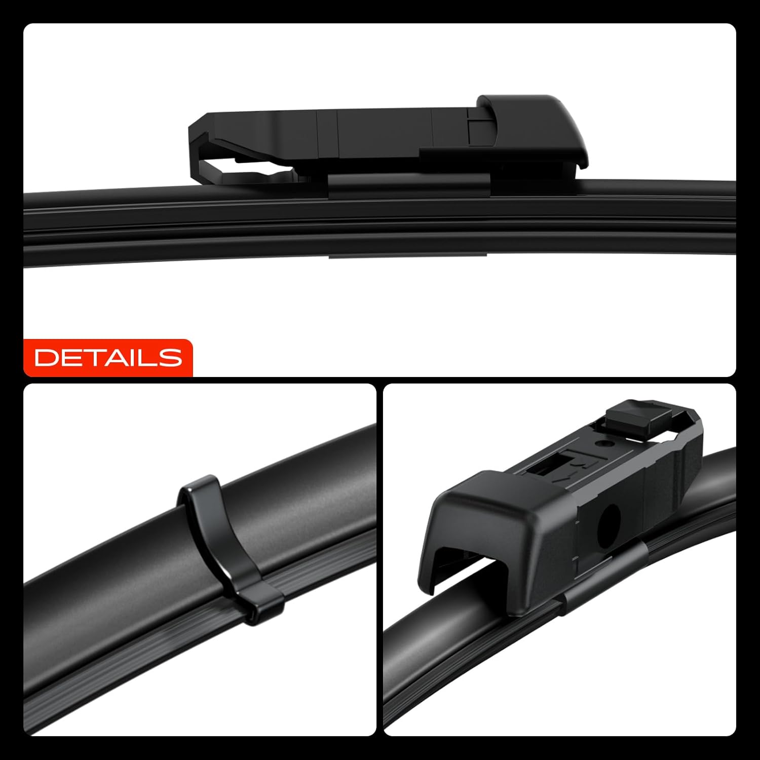 Com uma estrutura de aço de alta tensão e um design de mola dupla, as palhetas de limpador mantêm uma distribuição uniforme de pressão ao longo de toda a curvatura do vidro. Isso elimina o problema de saltos ou áreas não limpas, que são comuns em palhetas de qualidade inferior. Além disso, o revestimento patenteado das palhetas assegura um funcionamento silencioso, proporcionando uma experiência de condução mais agradável.