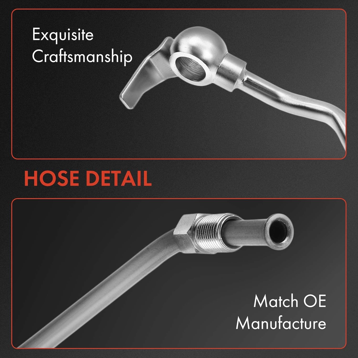 - [Sem Vazamentos]: O mangueira de pressão da direção hidráulica A-Premium (também conhecido como “mangueira de alta pressão”) é fabricado com borracha resistente e liga metálica, que demonstram boa resistência, tenacidade e não são fáceis de desgastar ou quebrar. O tamanho, comprimento e porta deste mangueira de direção hidráulica são idênticos ao original. Após substituir o mangueira antigo e desgastado por este tubo de pressão, não há mais necessidade de lidar com problemas irritantes de vazamento de fluido de direção.
