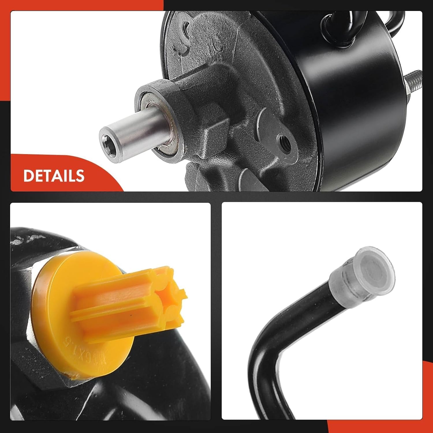 • [Substituição Profissional]: Esta bomba de direção hidráulica (também conhecida como “bomba de assistência de direção” ou “bomba de palhetas”) é uma substituição para o sistema de fluido de direção dos modelos mencionados, ajudando a resolver problemas como: â‘  vazamentos de fluido de direção â‘¡ ruído agudo ao girar â‘¢ direção pesada e irregular â‘£ flocos de metal no fluido ⑤ símbolo de direção hidráulica no painel