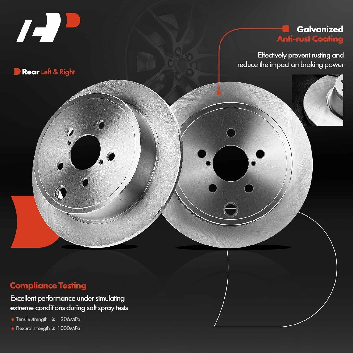 Os discos de freio A-Premium são projetados com um tipo sólido, apresentando um diâmetro externo de 286 mm e uma espessura de descarte de 0,33 polegadas. Com cinco furos para parafusos de montagem, eles são robustos e confiáveis. O kit inclui também pastilhas de freio cerâmicas, que não apenas proporcionam uma frenagem eficiente, mas também contam com indicadores de desgaste, permitindo que você monitore a condição das pastilhas com facilidade.
