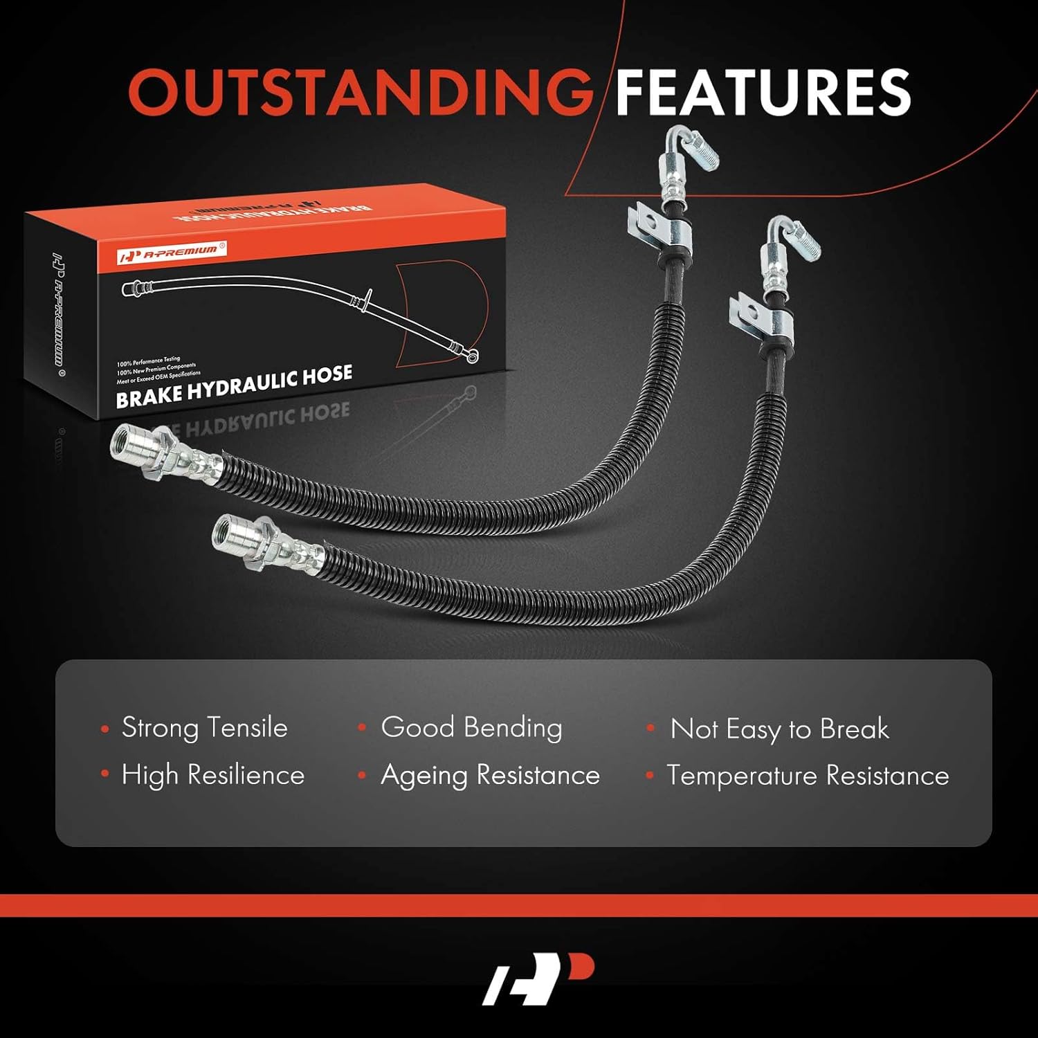 - [Qualidade Superior] A mangueira hidráulica de freio A-Premium é composta por borracha EPDM e conexões de aço inoxidável, atendendo aos padrões de certificação DOT, Normas de Segurança de Veículos Motorizados Federais (FMVSS 106) e Padrões SAE J1401. O artesanato e os materiais de alta qualidade garantem durabilidade superior e desempenho excelente, melhorando todo o sistema de frenagem.