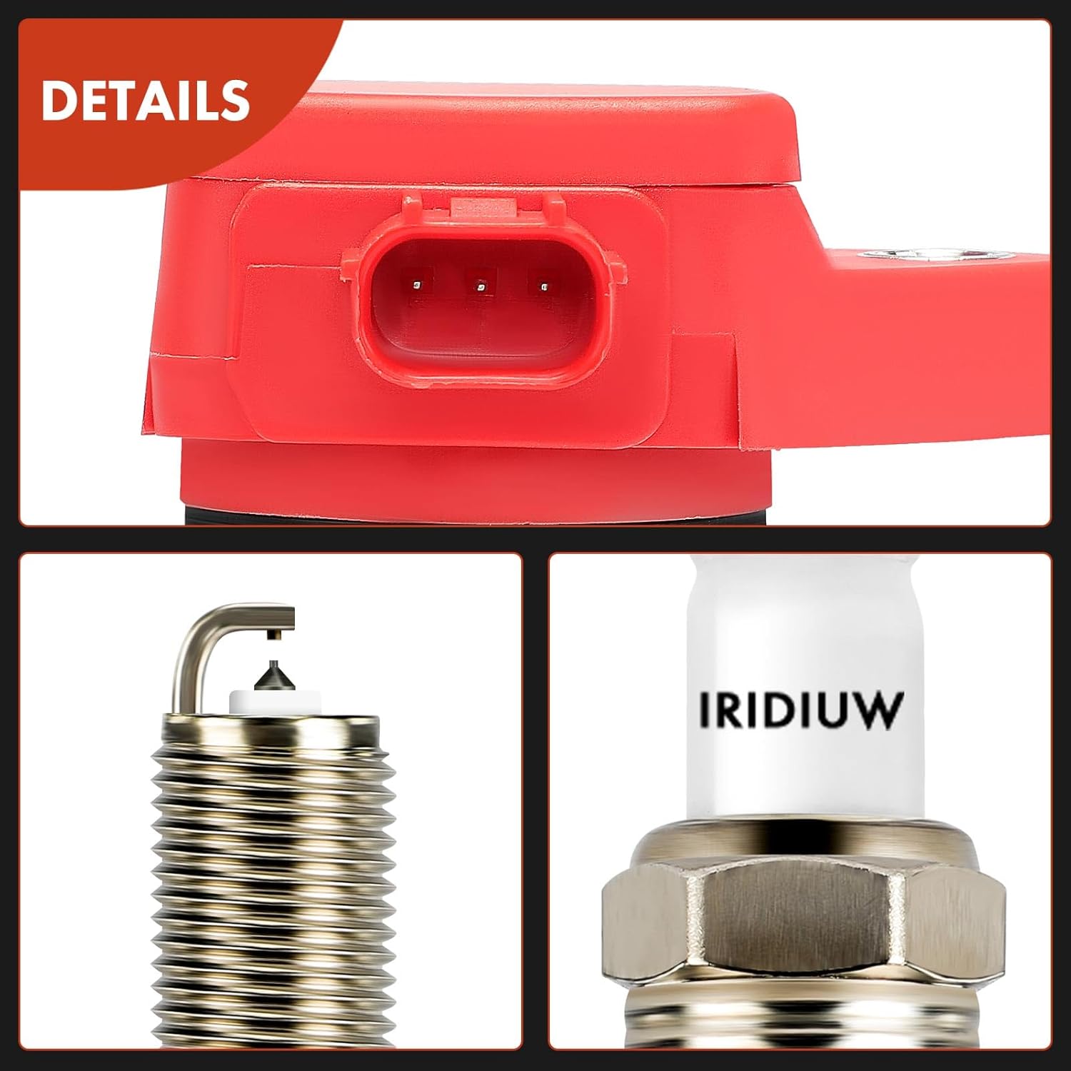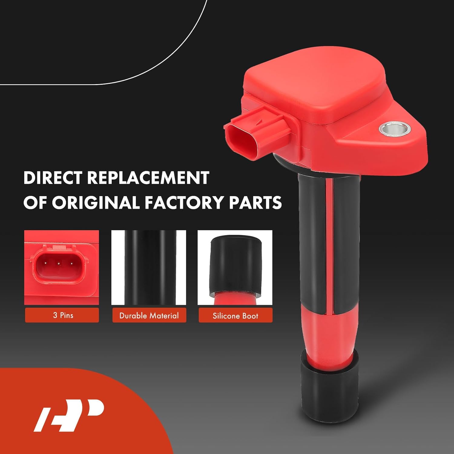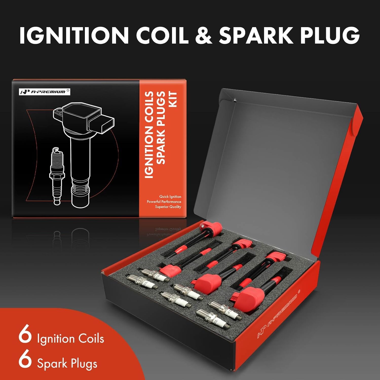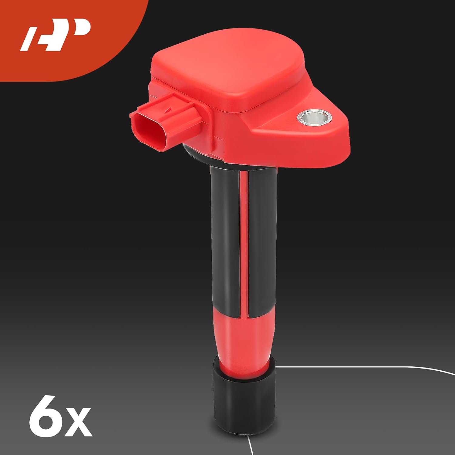 Descrição do Produto: A-Premium (Vermelho) Conjunto de 6 Bobinas de Ignição e Velas de Ignição de Irídio Compatíveis com Honda Accord 2008-2012, Crosstour e Odyssey