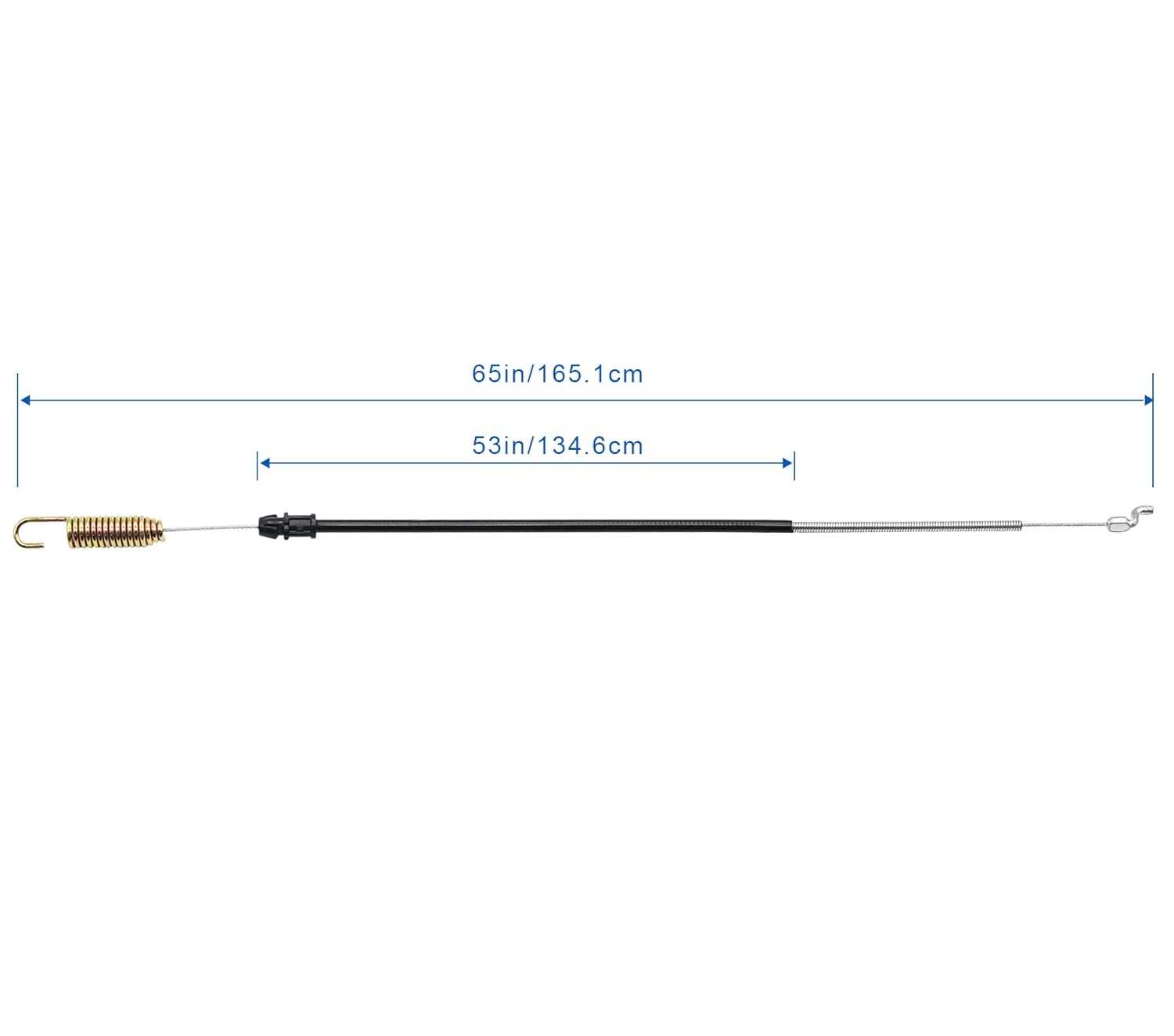 Resposta: O cabo tem um comprimento total de 65-1/2 polegadas, com um conduíte de 53 polegadas.
