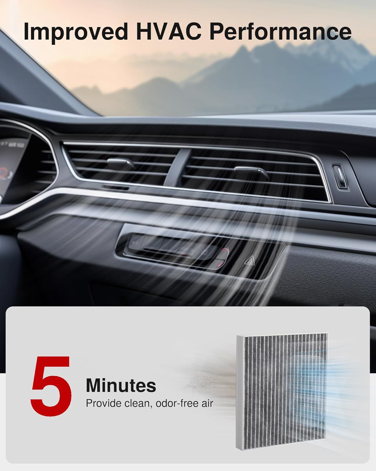 Melhora o Desempenho do HVAC: É recomendado substituir o filtro de ar da cabine anualmente ou a cada 12.000 milhas. Para um desempenho ideal, motoristas que circulam em áreas altamente poluídas ou em estradas de terra devem trocá-lo a cada 5.000 milhas. Esses filtros ajudam a manter a eficiência e a longevidade do sistema de aquecimento, ventilação e ar condicionado (HVAC) do veículo, garantindo um fluxo de ar otimizado e reduzindo a carga sobre o sistema.