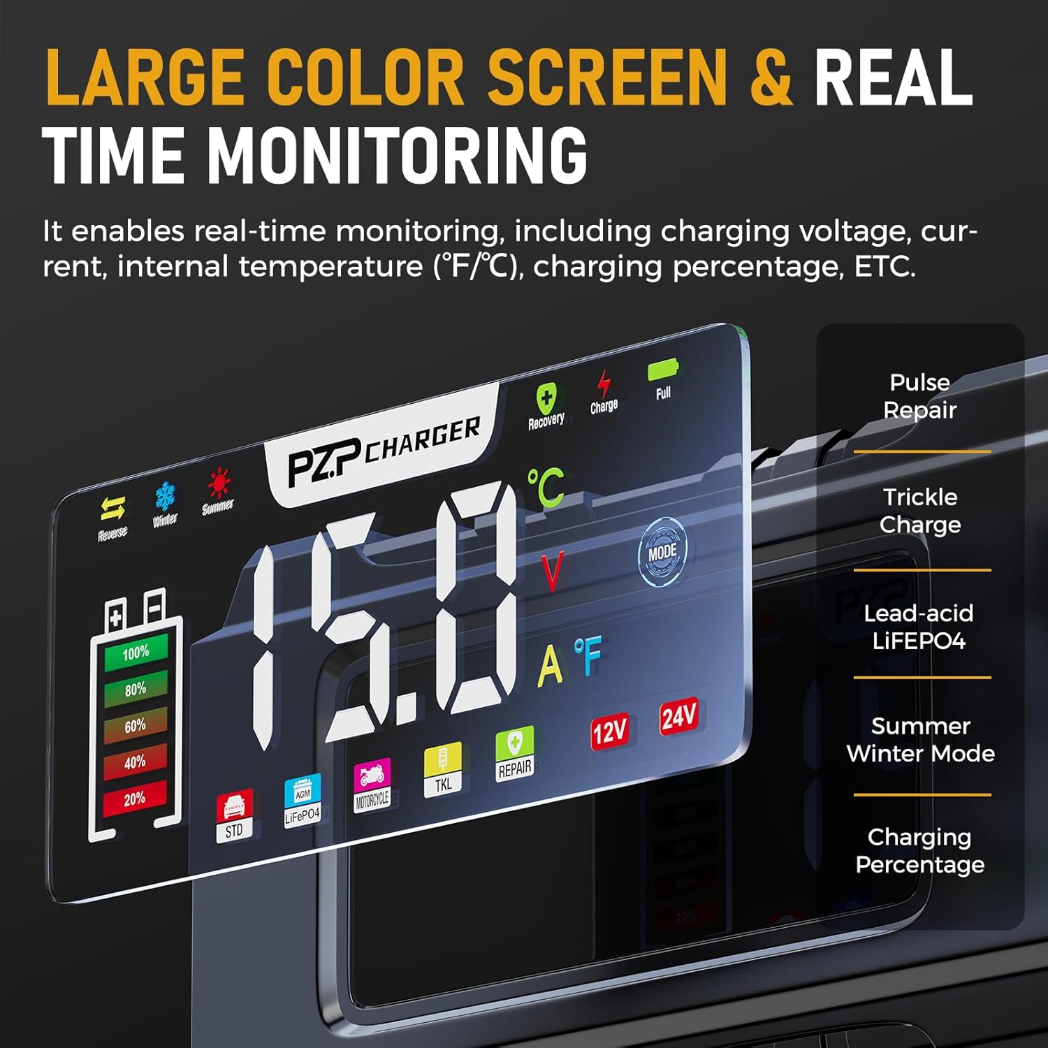 This charger has more modes than your typical charger. At first I didnt get what repair meant, but you know when rechargeable batteries show “defective”? That’s what this mode will possibly “repair.” There’s been a trick with rechargeable batteries where you pulse the charge and eventually you can get a low cell to start working agin. This repair is just doing that for you. I’ve done this with Makite and Milwaukee batteries but never a car battery. Also, if you have a new hybrid, this charger will work with the AGMtype, which means it has glass plates instead of the traditional. This allows more current to flow, but also is moree expensive than a traditional battery.