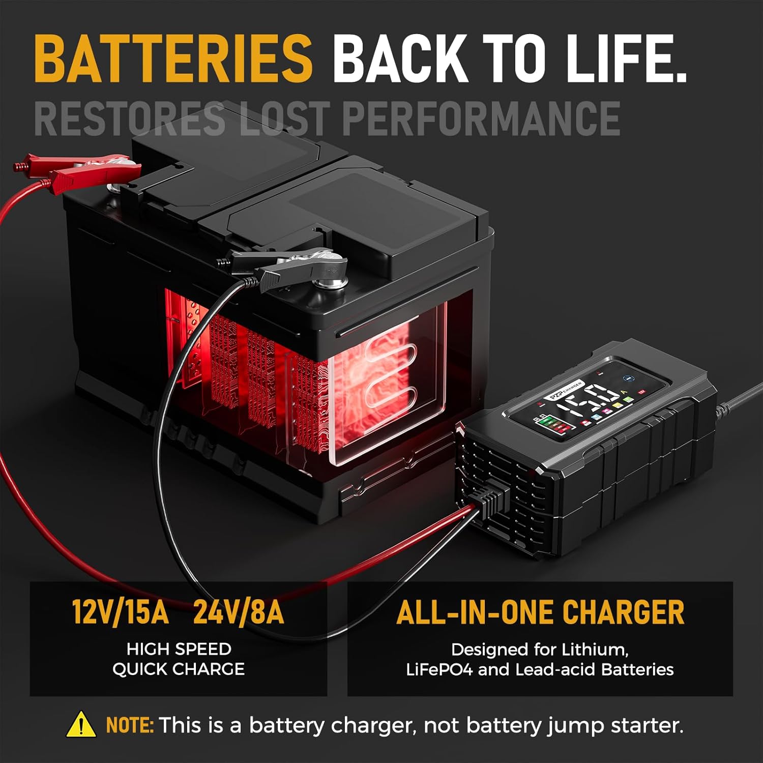 The product description refers to this device as a “quick charger,” which I find somewhat misleading. Quick battery chargers typically operate within the range of 20-50 amps, so at 15 amps, this charger is more accurately classified as a medium charger (10-20 amps). While it will charge faster than a 10-amp charger, calling it a quick charger is a bit of a stretch.