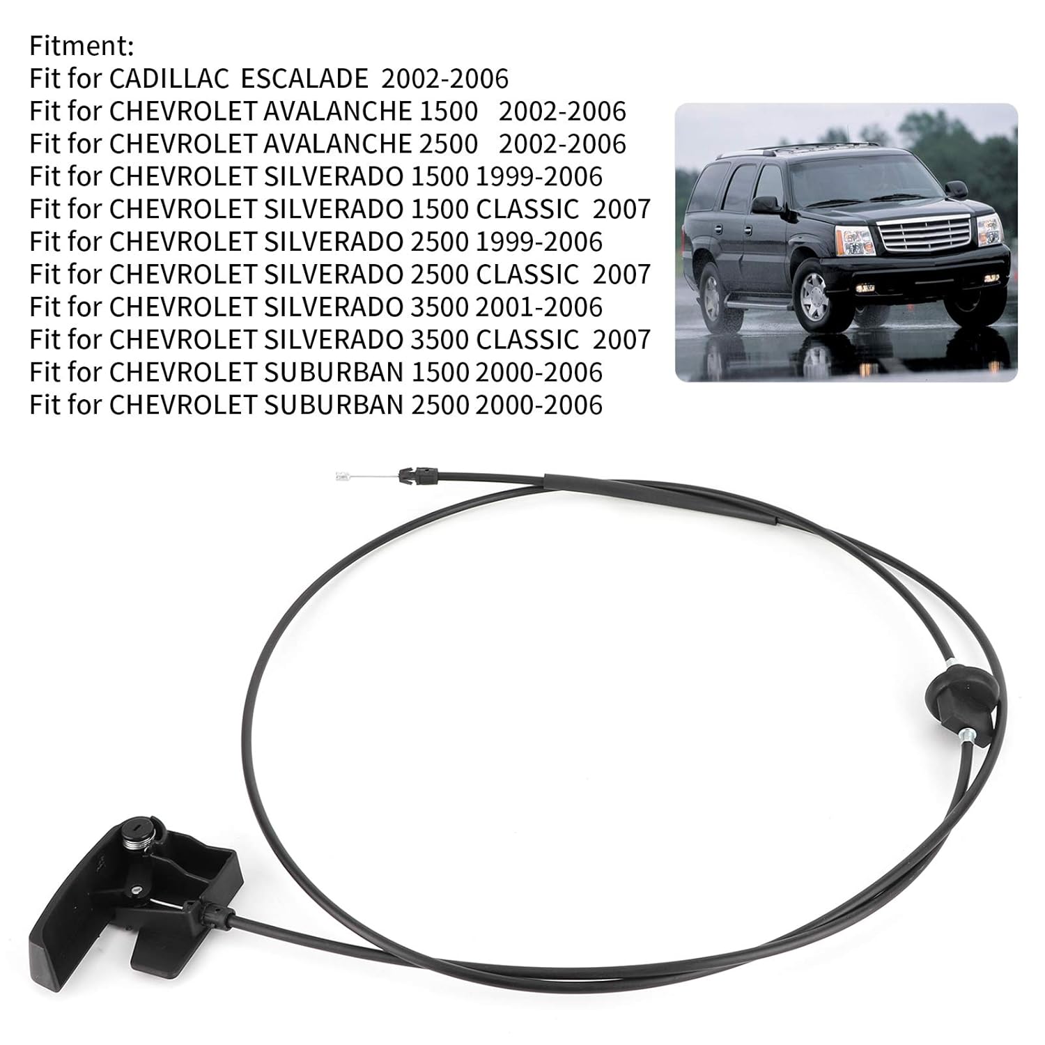 Cabo de Liberação do Capô Qiilu 15142953 Compatível com Chevrolet Avalanche, Silverado, Suburban e Tahoe