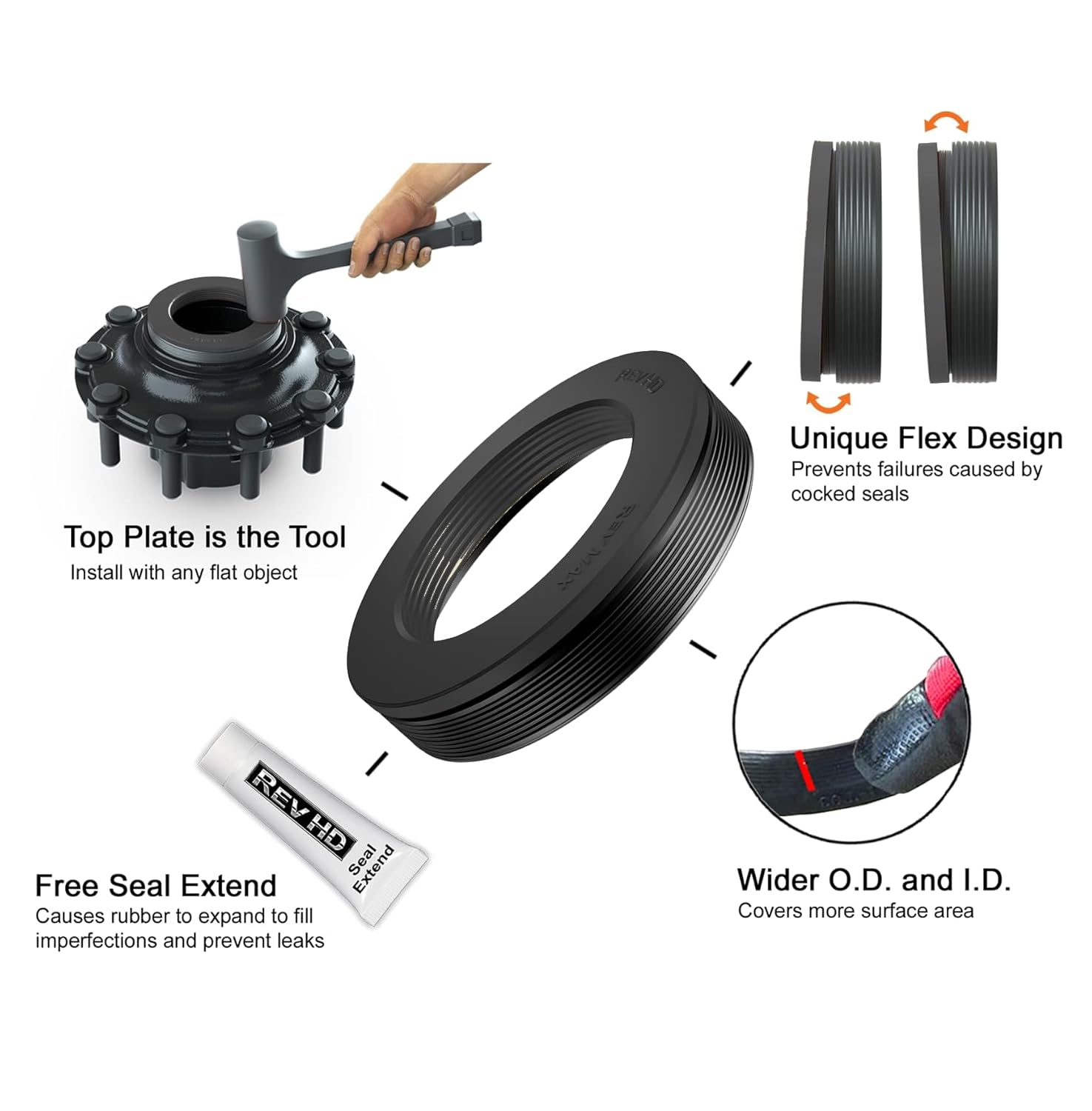 O selo é projetado para suportar uma ampla faixa de temperatura, variando de -40°F a 225°F (-40°C a 107°C), tornando-o ideal para diversas condições operacionais. A versão Rev 1 é o nosso selo padrão, que contém lábios de vedação internos em NBR e vem com uma garantia de 1 ano. Ele é compatível com as referências CR/SKF 47691, 47692, 47695, 47697, FM 370003A, 380003A, Stemco 393-0173, 392-9131, 393-0273 e 309-0973, sendo equivalente à série National 37000 e ao Stemco Voyager Meritor Standard 01 Series.