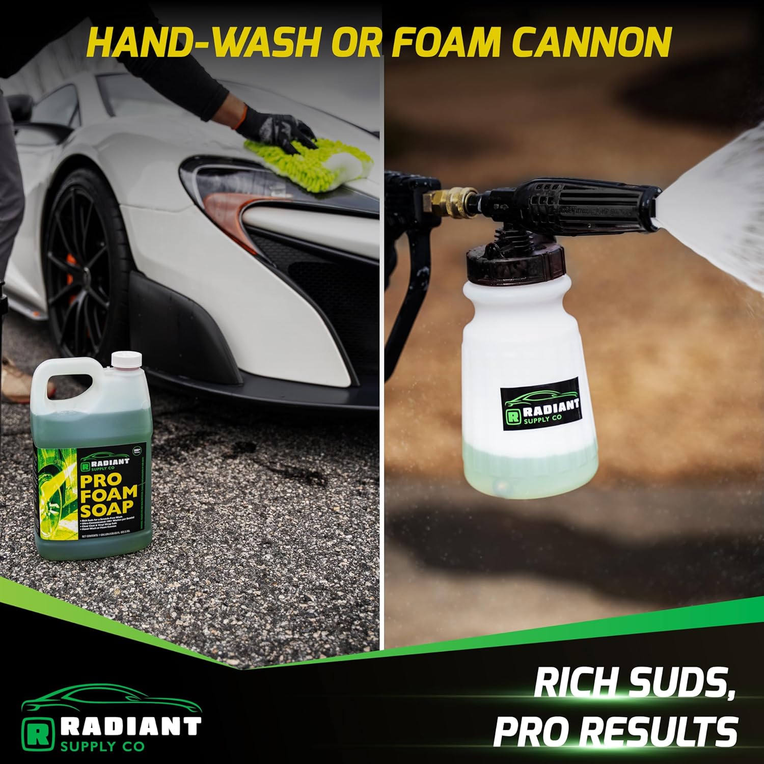 Descubra o poder de limpeza incomparável com o Radiant Supply Professional Car Wash Soap, a escolha ideal para quem busca um resultado excepcional em cada lavagem. Este sabão para lavagem de carros, projetado para canhões de espuma ou lavagens em balde, é ultra concentrado e equilibrado em pH, proporcionando até 100 lavagens para carros, caminhões, motocicletas e RVs em um galão de 128oz.