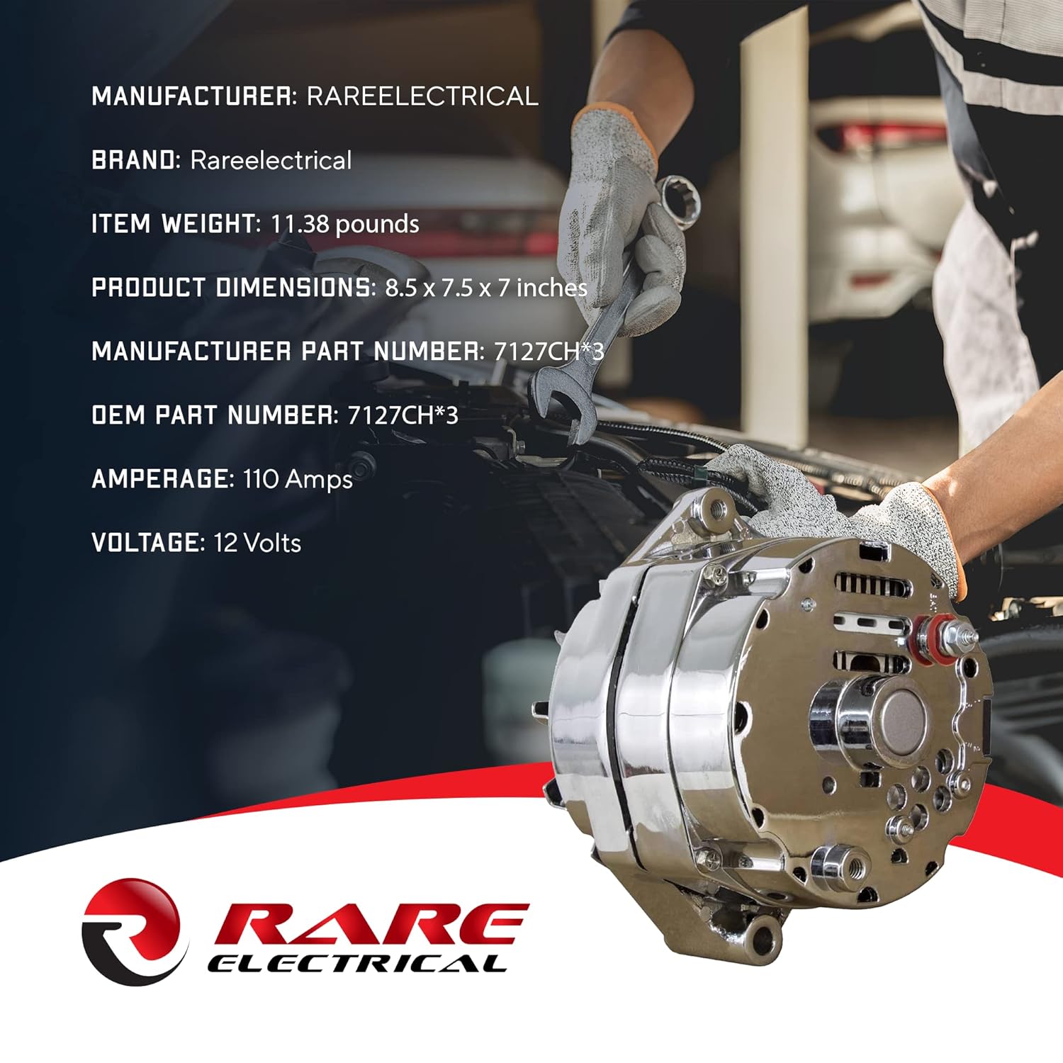 O Alternador RAREELECTRICAL 110A Chrome Street Rod é a escolha ideal para quem busca eficiência e desempenho em veículos clássicos e de alta performance. Compatível com as marcas DELCO, GM, MAN e MINI, este alternador é projetado para substituir unidades de 1965 a 1986, garantindo uma instalação simples e direta. Com um design elegante em cromo, ele não apenas melhora a estética do seu motor, mas também oferece uma performance superior.