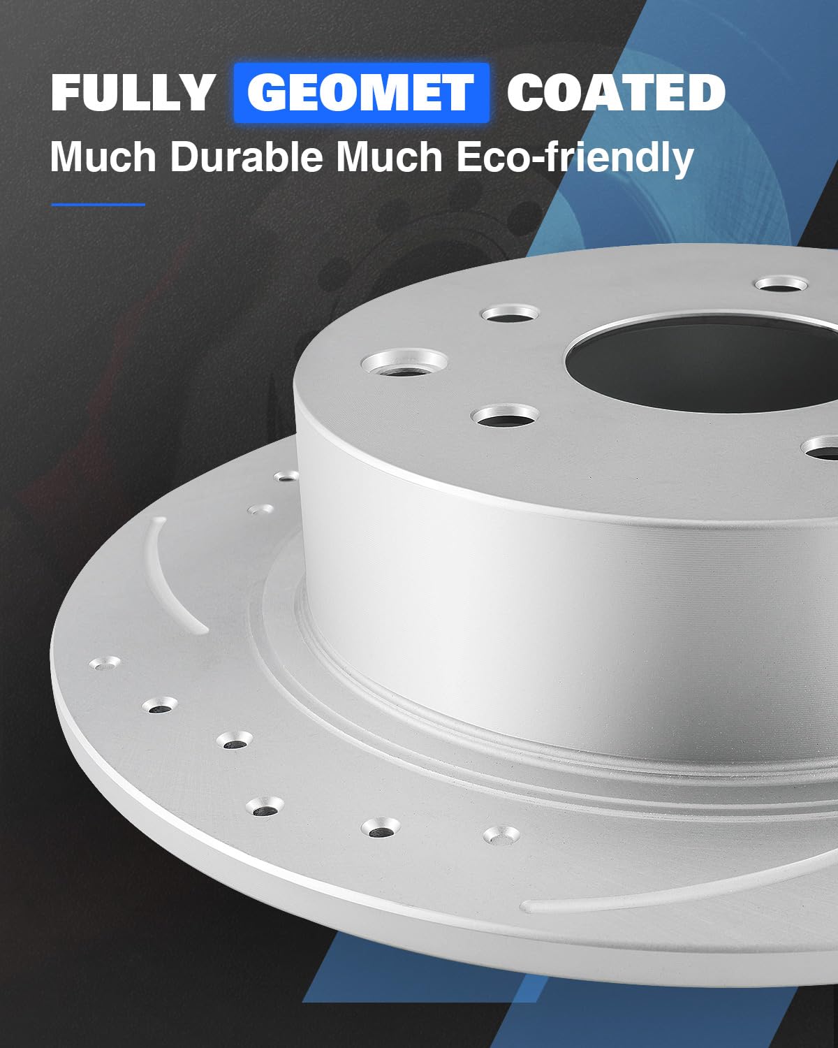 Acabamento Geomet: O acabamento Geomet é uma inovação que protege os discos contra ferrugem e corrosão, resultantes de elementos externos e produtos químicos. Este revestimento à base de água se auto-repara, prolongando a vida útil dos discos e reduzindo a necessidade de trocas frequentes.