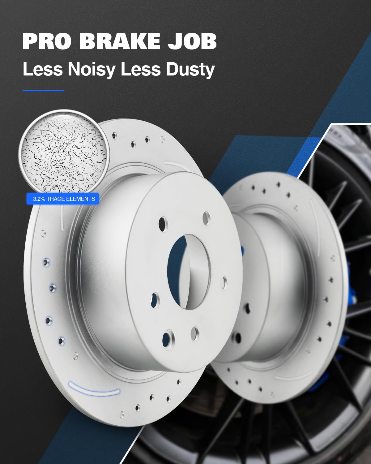 My brakes are much smoother and quieter now that the new rotors are on. They work great, and I’m definitely happy with my purchase.