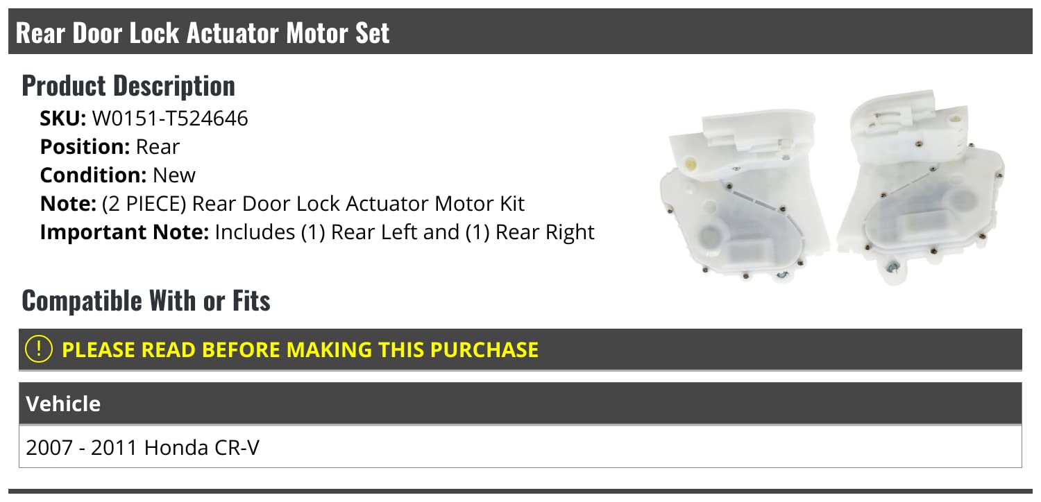 Descrição do Produto: Conjunto de Motores de Atuação da Fechadura da Porta Traseira – Compatível com Honda CR-V 2007-2011