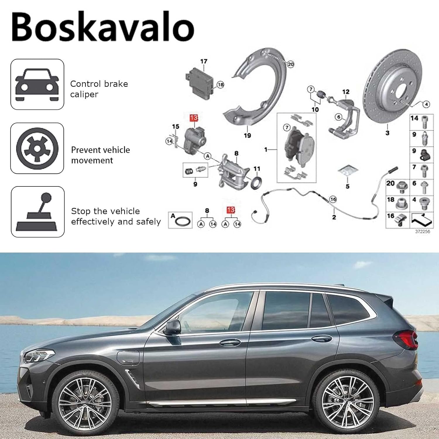 This is a component of the electronic parking brake system on , many BMWs from 2009 to 2016, with two of these actuators mounted at the top of each rear wheel (location shown in 4th photo) in my 2014 650i. A third component is a central control module, located on the right rear trunk panel near the battery in my model. This system is known to fail in BMWs, which flash messages and codes, but usually fail to tell you the exact source of the problem. Mine made reference to left actuator wire disconnect, so I replaced my old one, shown in photos, with this identical unit. Oh, let me remind you: Order this part from a BMW dealer at a price over $500, or purchase this one for $35? Not a very hard choice, is it? And this comes with a new o-ring, plus two new connecting Torx bolts, which even have a small patch of anti-seize added! In my case, it appears that the electrical fault is in the central module, as the car still gives the brake fault message and code after installation. But it was helpful to rule out the actuator as the source of the problem and have a new unit on the car. Also, installation of this part is pretty easy, only requiring rear tire removal, can be done easily within 30 minutes. Nice to see the availability of such parts on Amazon.