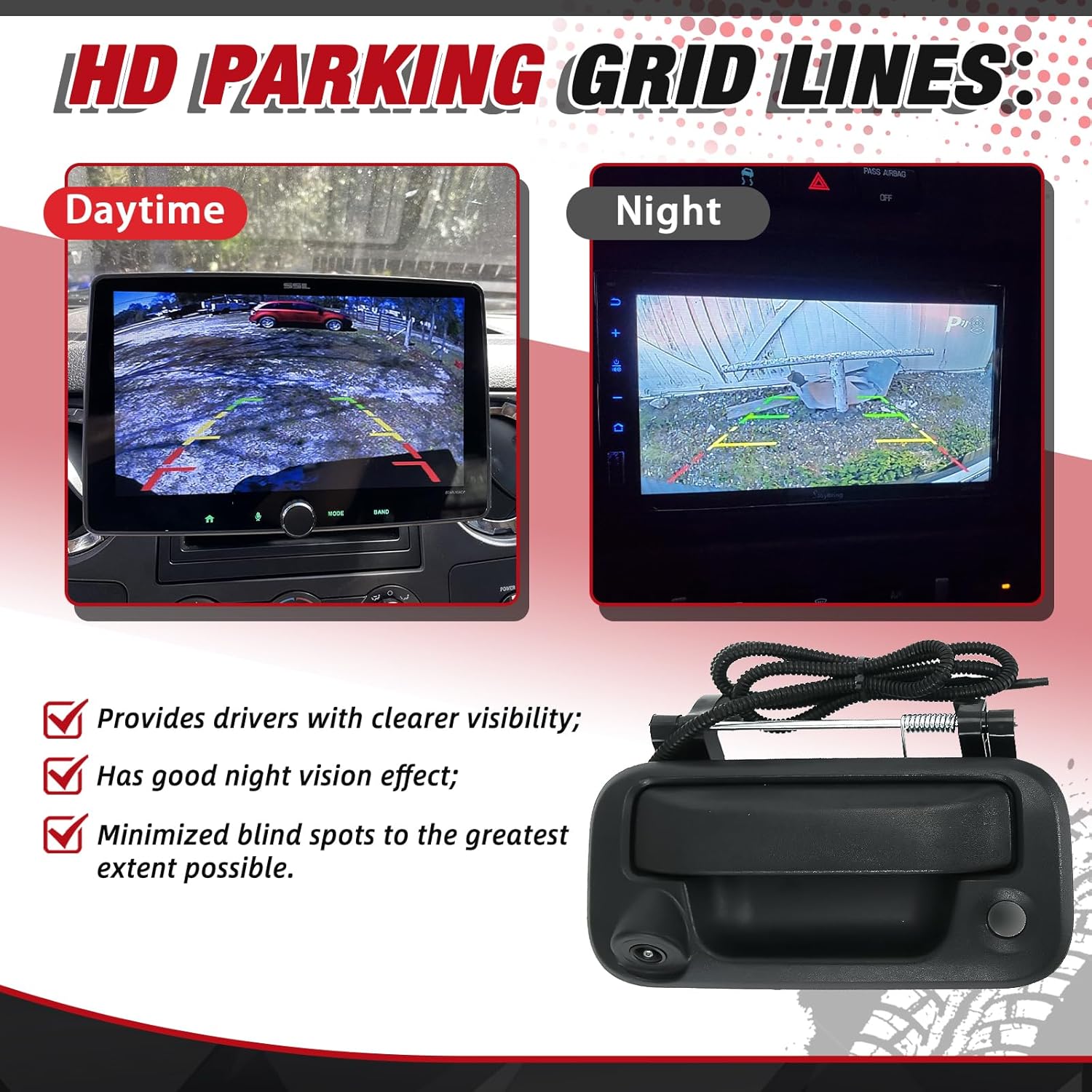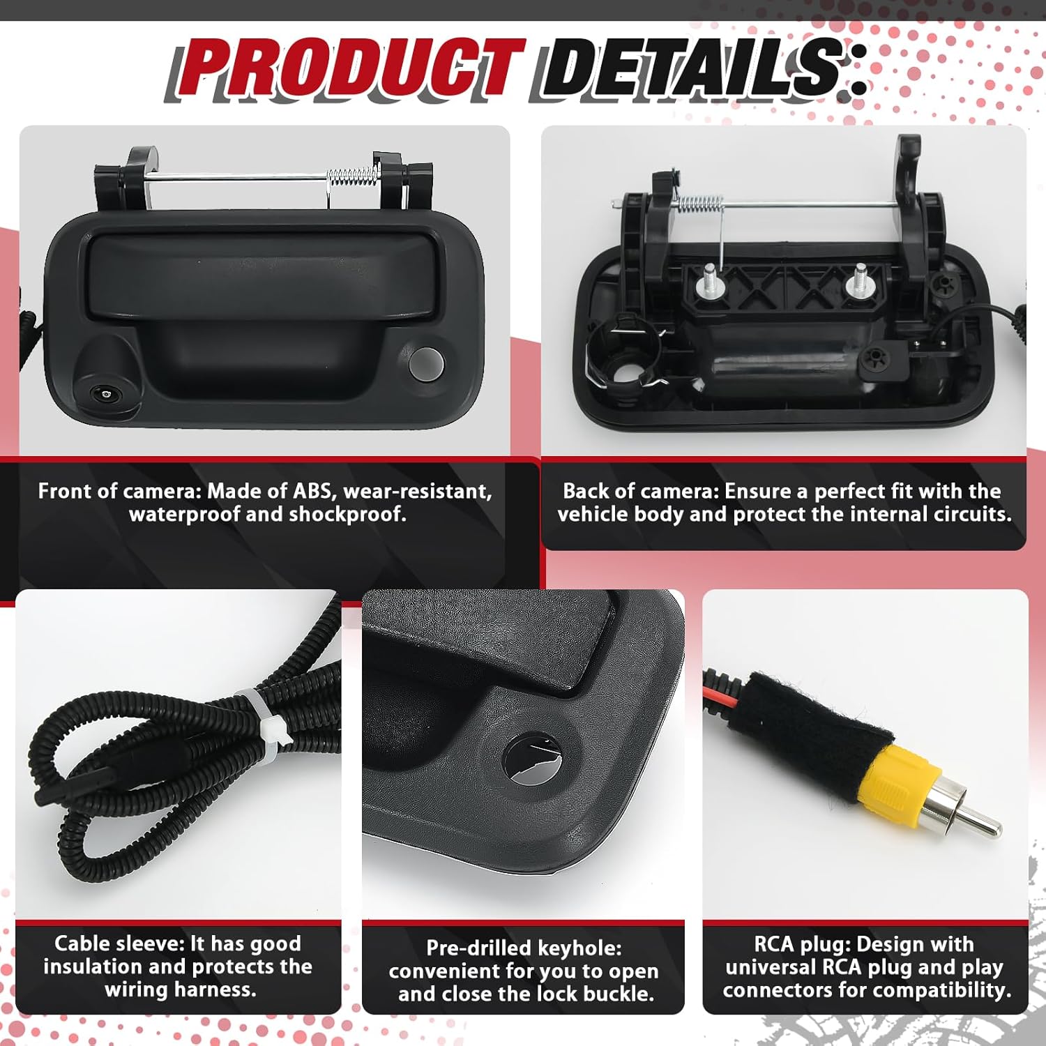 - Fácil de Instalar: A alça do porta-malas pode ser substituída diretamente, sem necessidade de furar buracos. Vem com um conector RCA universal, permitindo a conexão com a maioria dos monitores/receptores de vídeo aftermarket. Possui um orifício pré-perfurado, facilitando a abertura e fechamento do fecho.