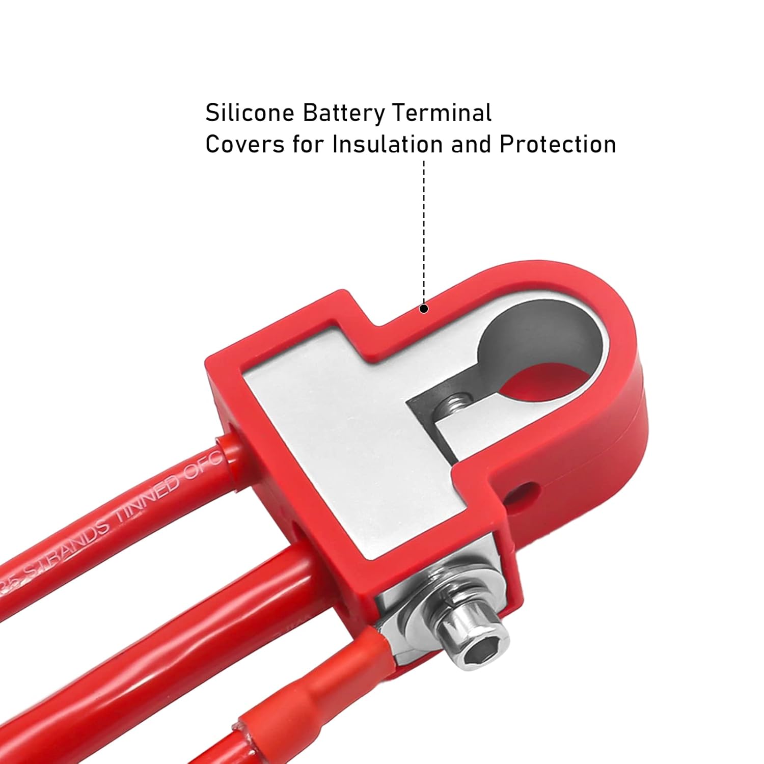 As capas de silicone vermelha e preta não apenas embelezam o visual, mas também oferecem isolamento e proteção adicionais, garantindo que suas conexões permaneçam seguras e livres de corrosão.