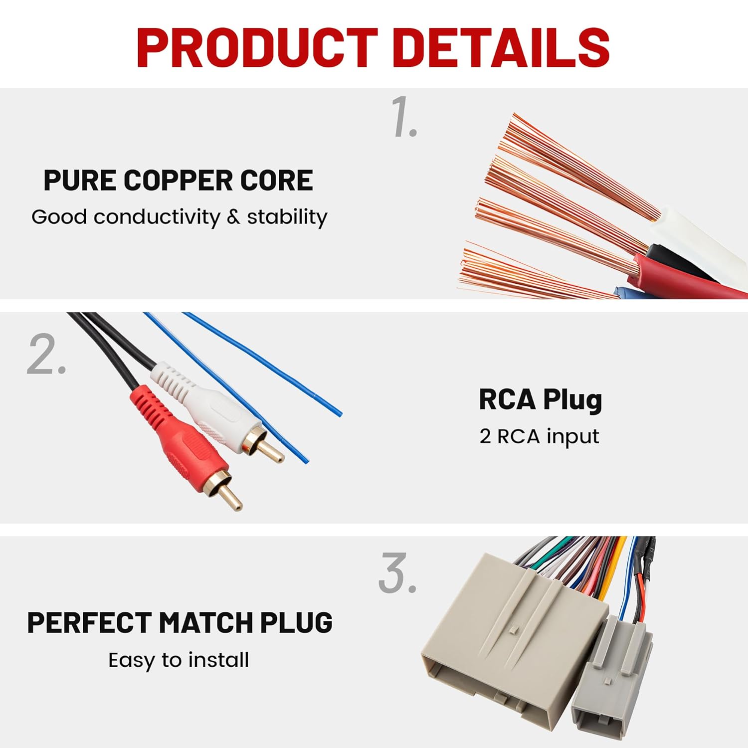 Descrição do Produto: RED WOLF Radio Wiring w/Antenna Adapter RCA Input Replacement