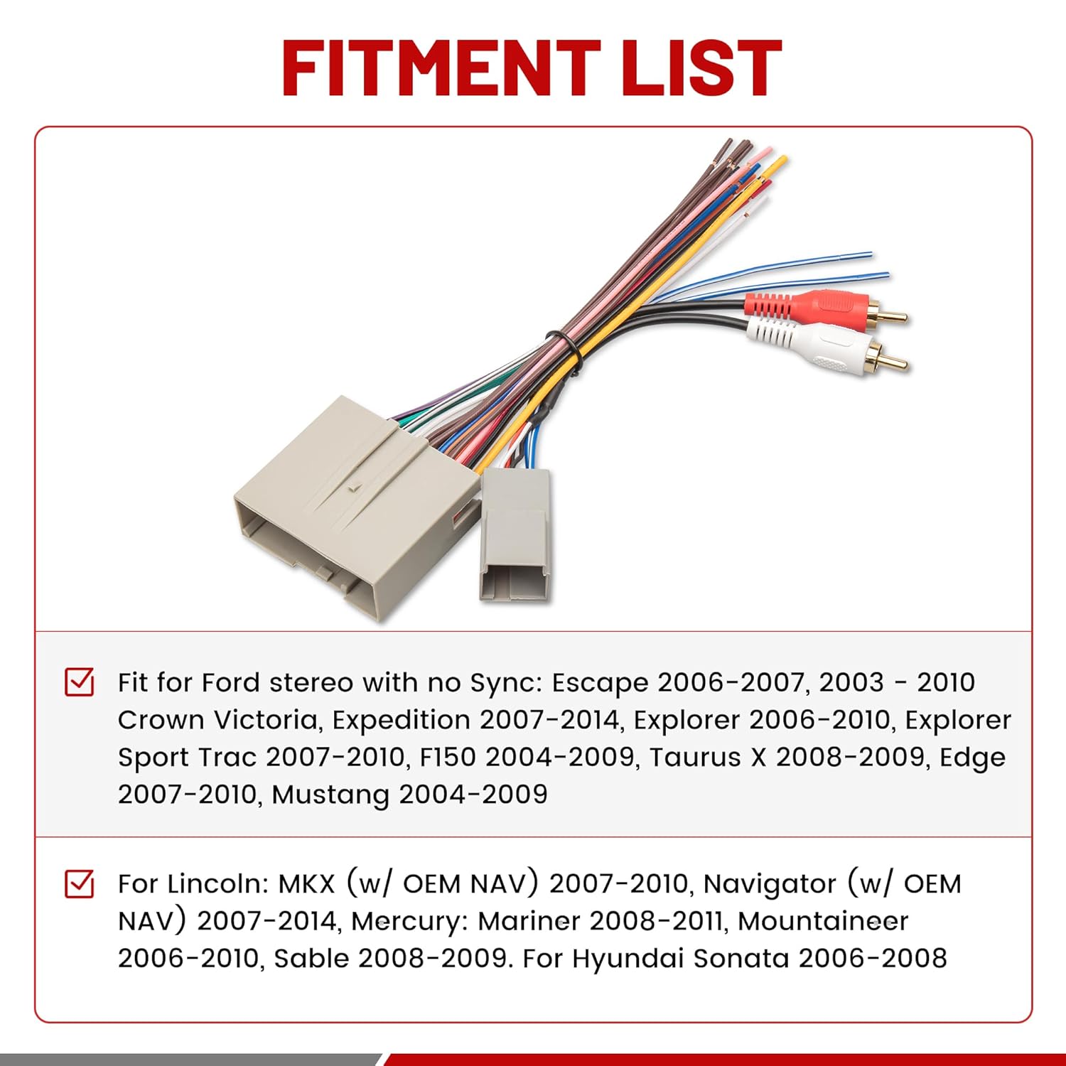 887 avaliações para Fiação de Rádio RED WOLF com Adaptador de Antena e Entrada RCA para Ford 2006-2012, Lincoln 2006-2010, Mercury 2006-2009 – Cabo de Instalação de Estéreo Aftermarket com RCA