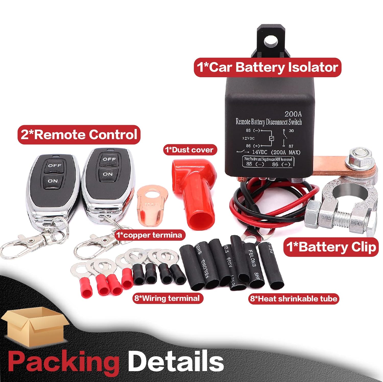 – Qualidade Premium: Fabricado em plástico ABS resistente ao calor, com contatos de prata e fios de cobre puro, o interruptor oferece melhor condutividade. Com uma corrente nominal de 200A DC12V, todos os cabos necessários estão incluídos, eliminando a necessidade de comprar acessórios adicionais.
