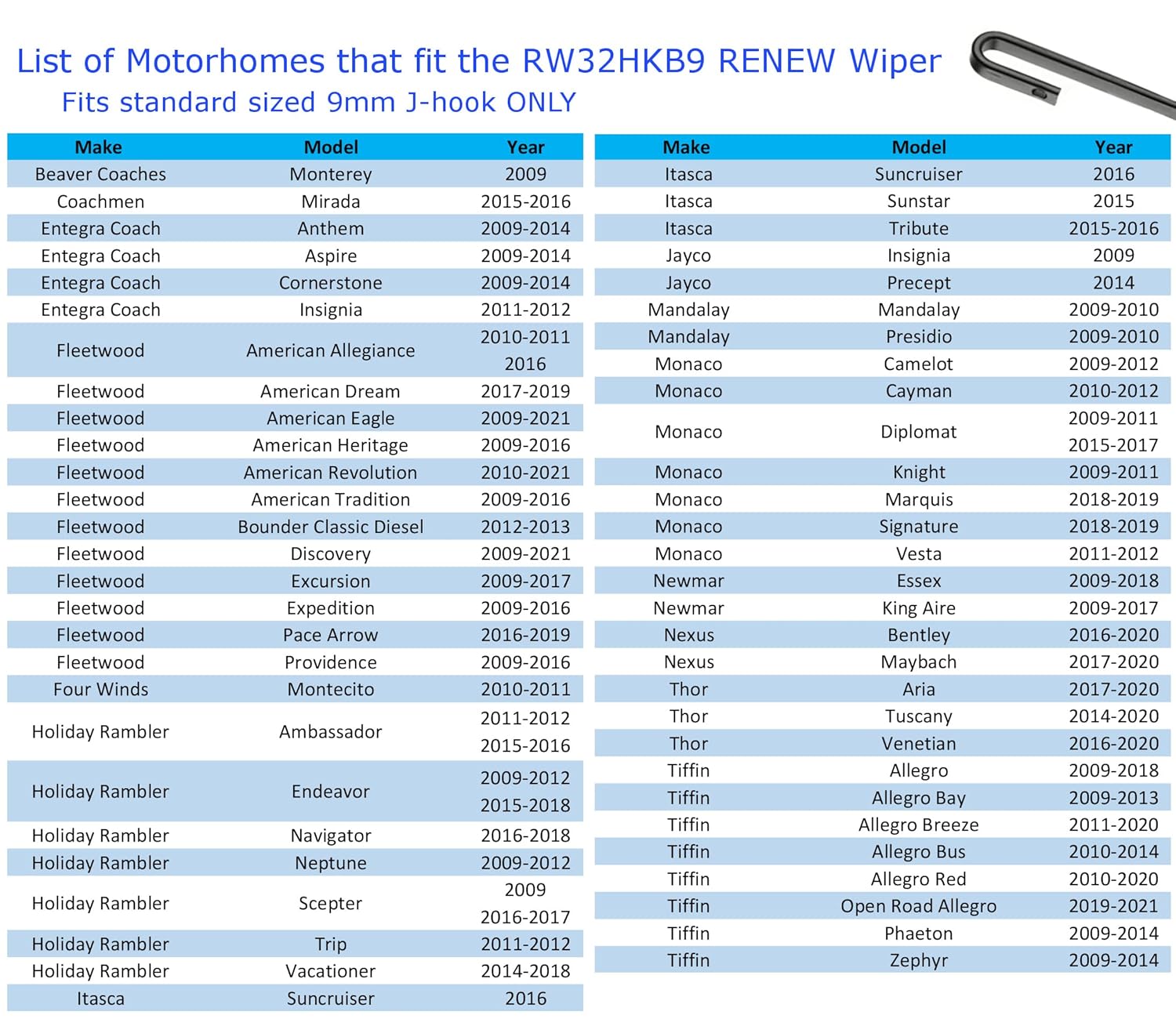 Lâmina de Limpador Renew RW32HKB9 32 Polegadas para RV e Motorhome – Par (Conjunto com 2) para Gancho 9×3, Compatível com 18-320