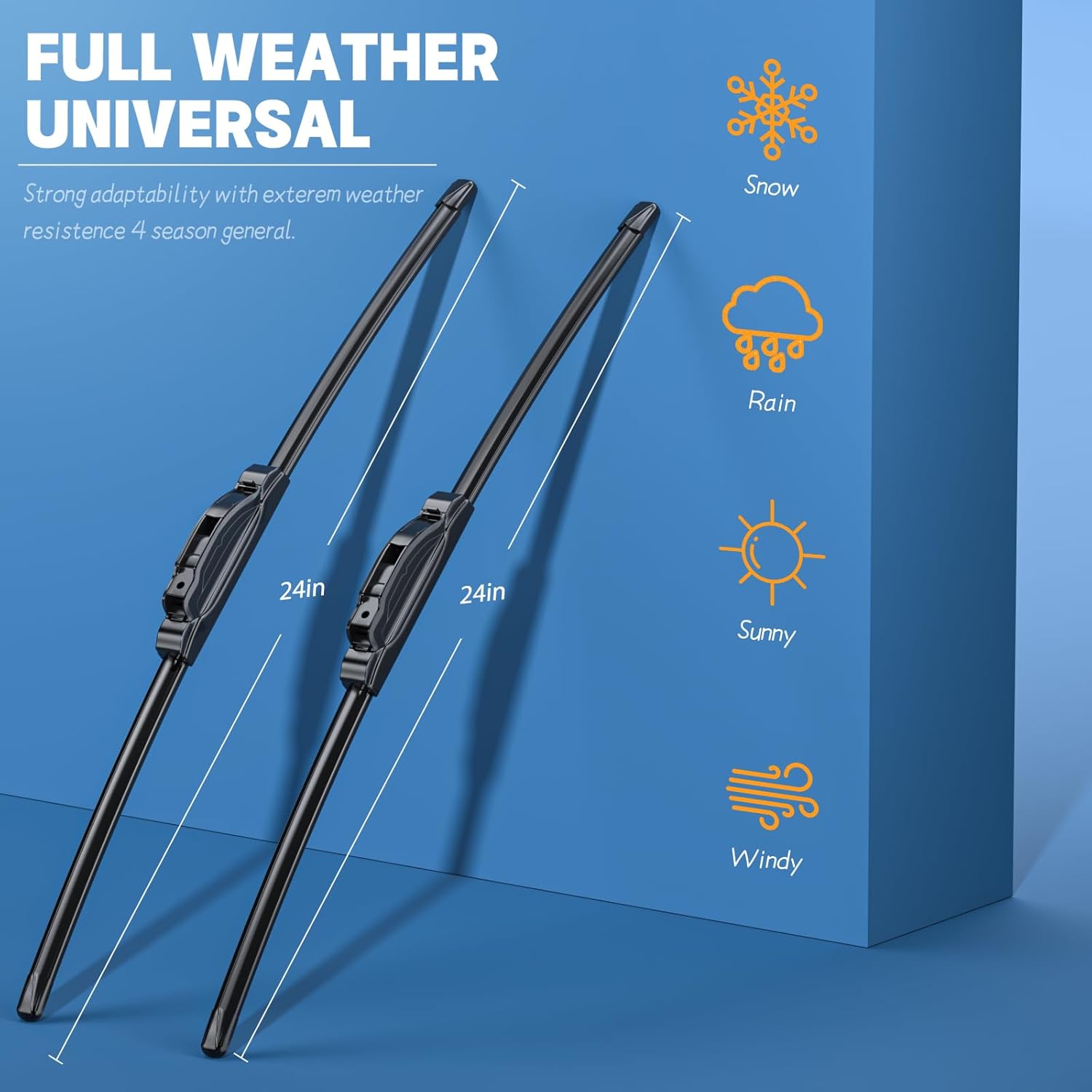 Desenvolvidos para enfrentar todos os tipos de clima, esses limpadores mantêm sua eficácia mesmo em condições extremas. A MIKKUPPA demonstra um compromisso constante com a evolução do produto e uma dedicação inigualável à segurança do motorista. Com uma construção em borracha tratada com grafite, os limpadores minimizam o ruído e a fricção, enquanto o spoiler de material misto assegura uma vida útil prolongada. Eles são projetados para desempenho em todas as estações e vêm com uma garantia de 6 meses.