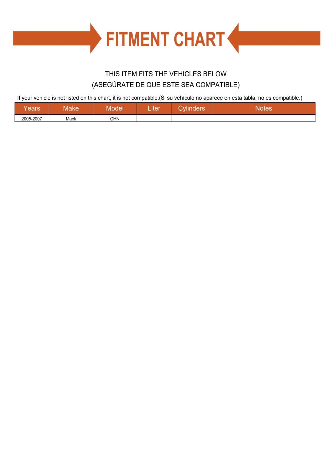 – Compatibilidade: Projetado para caminhões Mack CHN de 2005 a 2007.