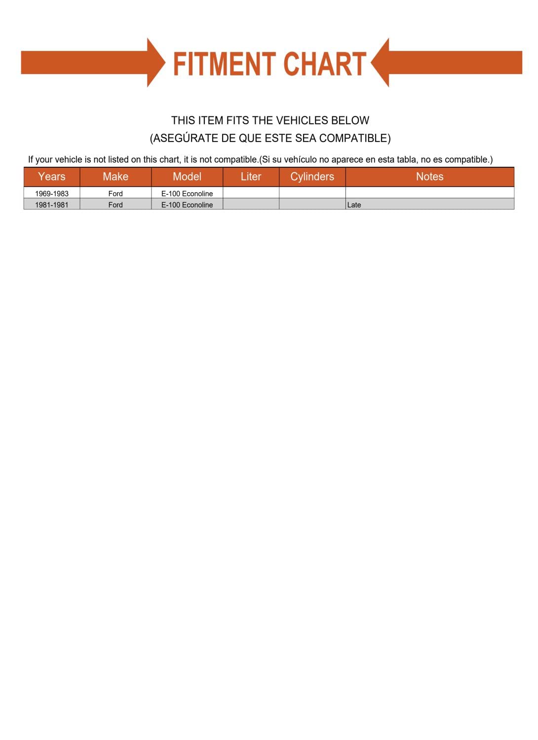 – Compatibilidade: Projetado especificamente para Ford E-100 Econoline (1969-1983).