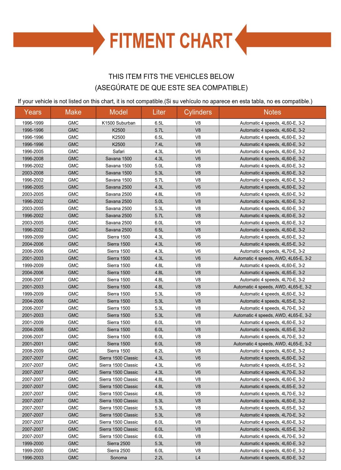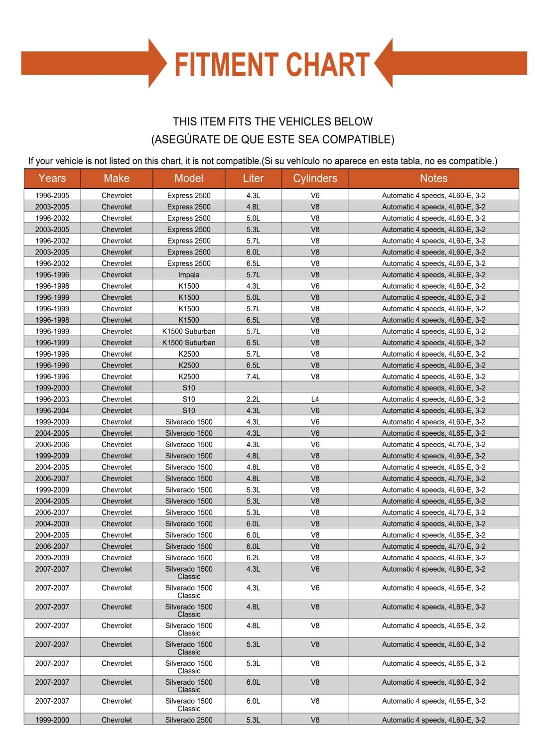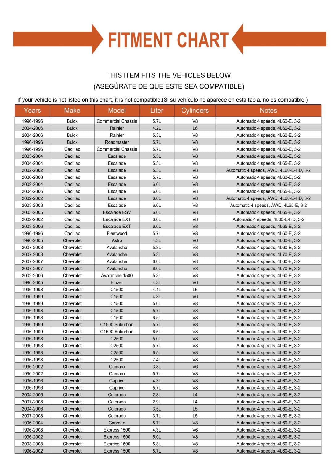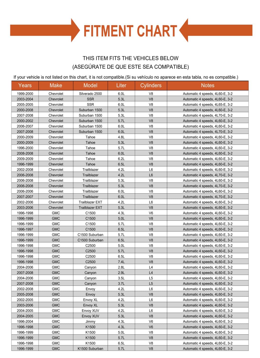 – Compatibilidade: Projetado especificamente para transmissões automáticas 4L60-E, garantindo um encaixe perfeito.