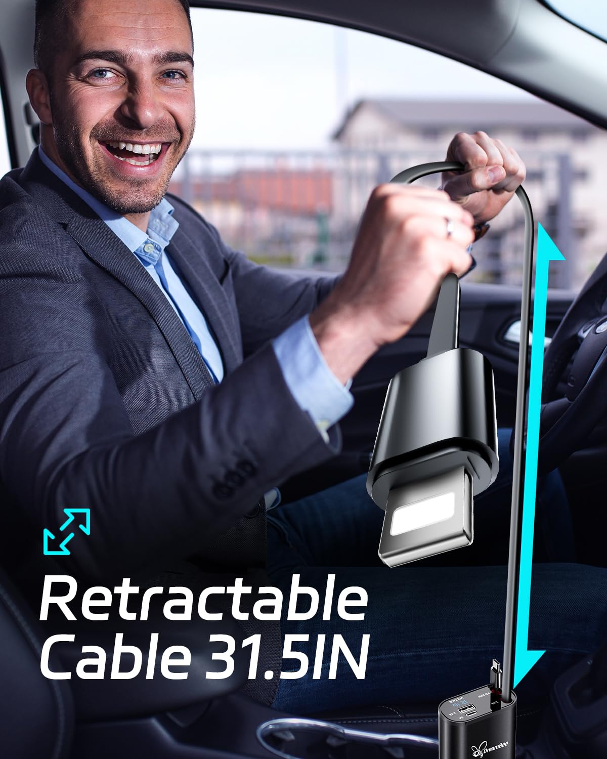 I recently purchased the DreamBee Retractable Car Charger, and overall, I’m quite impressed with its performance. The charger’s metal exterior feels premium and upscale, certainly adding a touch of class to the car’s interior. One of its standout features is the built-in retractable cables, which extend up to 31.5 inches—making backseat charging effortless and keeping my car looking neat without the usual cable clutter.