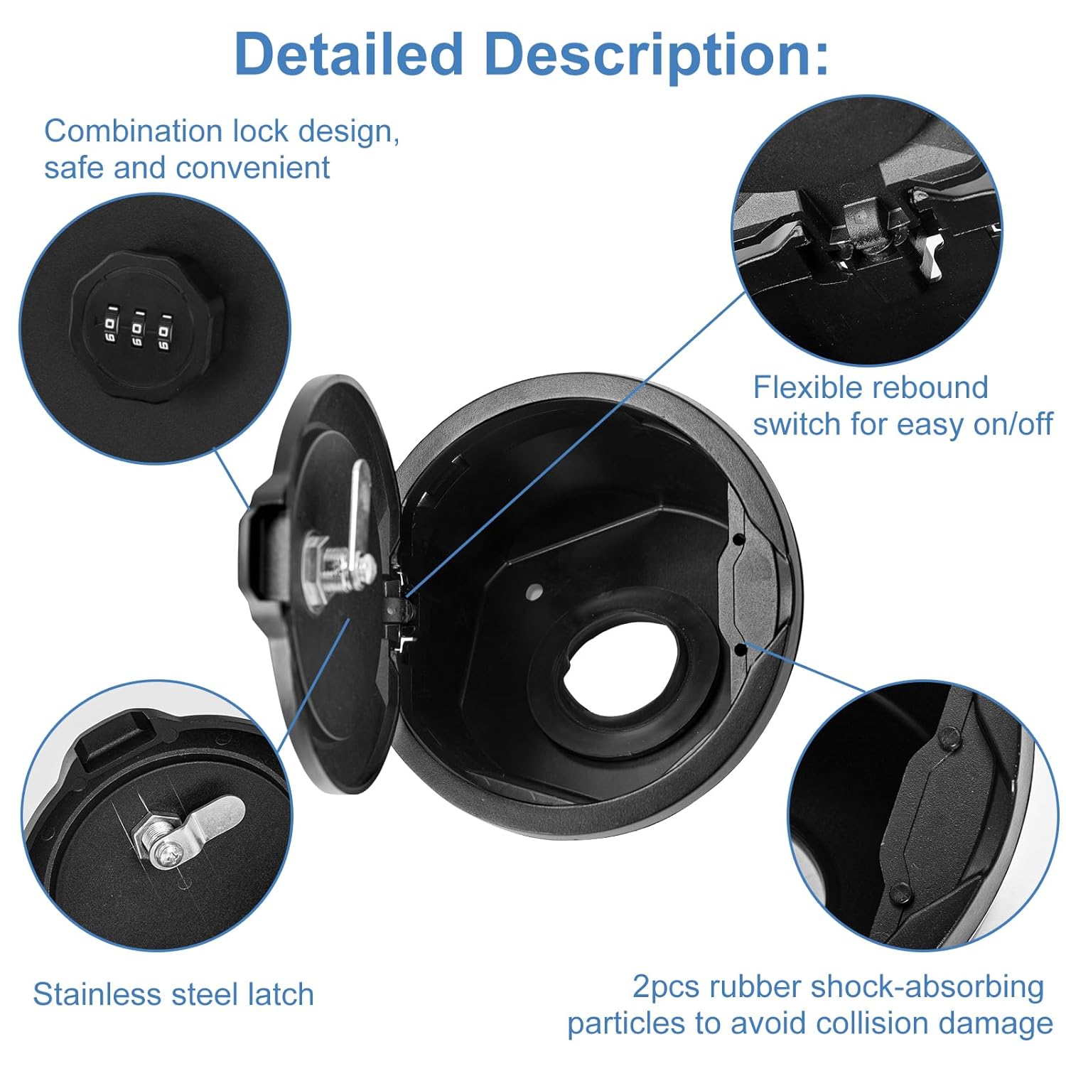 Descrição do Produto: ROCCS Gas Tank Cap Cover Fuel Filler Door Combination Locking para Jeep Wrangler 2007-2018 JK