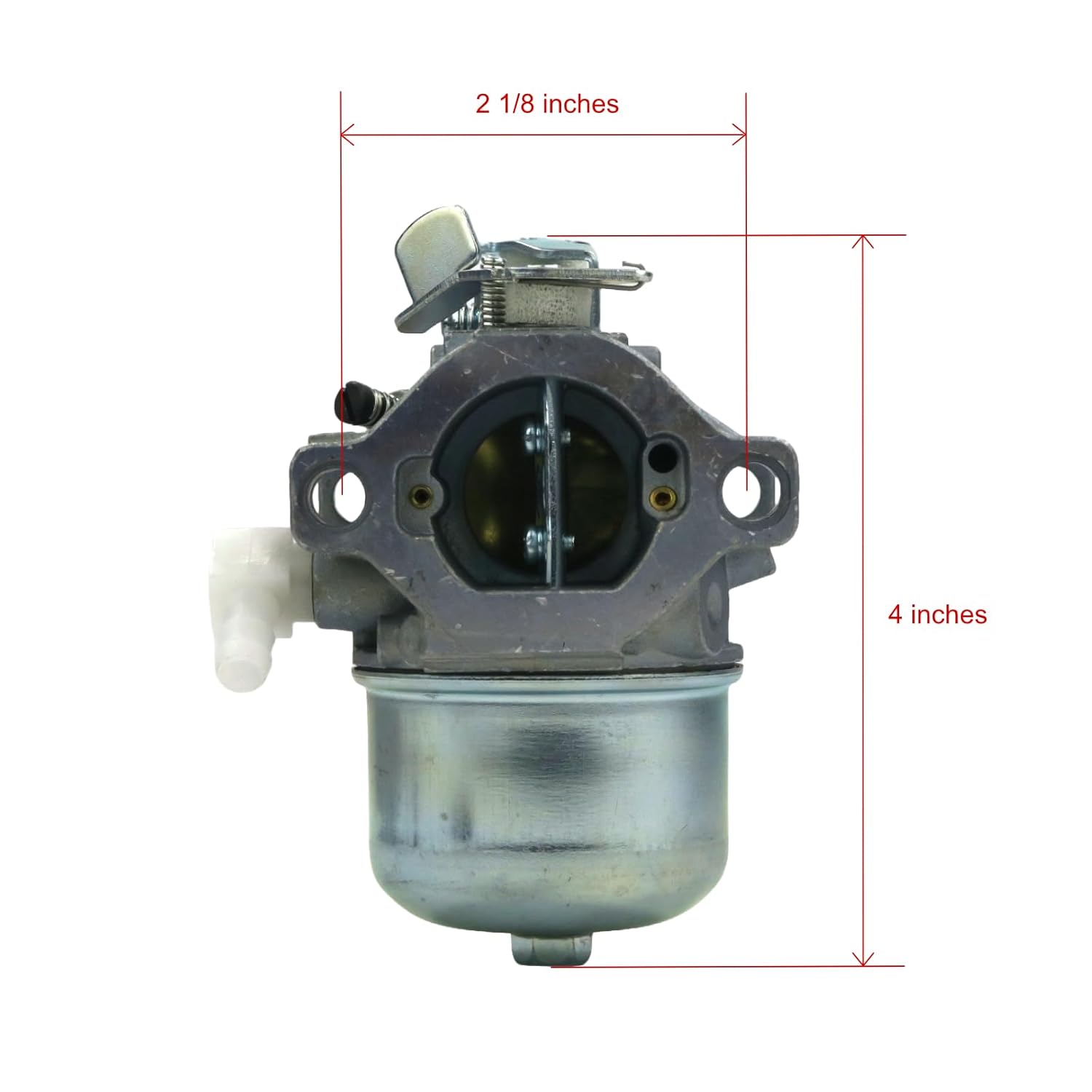 Especificações: Para mais informações detalhadas, consulte as imagens 2 e 3. O conjunto inclui (1) Carburador, (3) Juntas e (1) Espaçador, conforme mostrado na primeira imagem. É fundamental verificar o número da peça ou modelo do seu equipamento para garantir que este carburador seja o correto para sua unidade. Além disso, observe que este produto pode substituir vários números de peça, aumentando sua versatilidade.