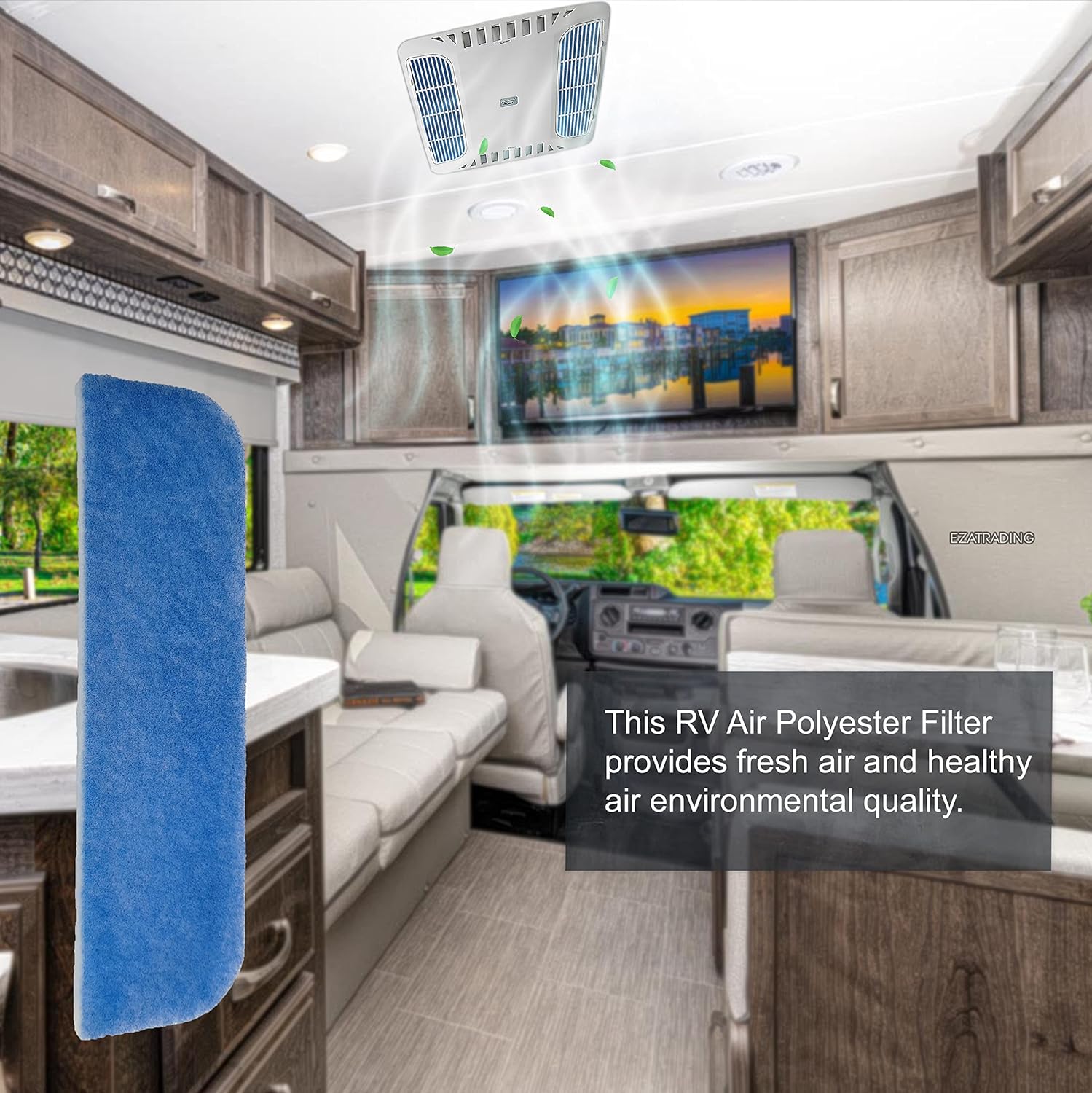 The ezatrading Store two pack 4″ X 16″ RV air conditioner filters were a perfect fit and very easy to install. Better yet, they do an amazing job of filtering the large amount of air these AC units draw in. These are MERV 8 rated. According to the internet, “A MERV 8 filter is considered suitable for residential settings, capturing particles like pollen, dust mites, and mold spores.” That’s plenty enough for me especially when you consider I don’t think the OEM filters have any MERV rating.