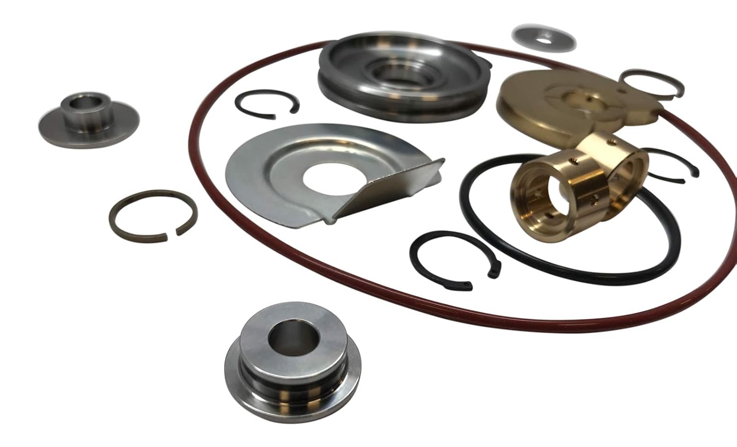 4. Montagem: Reassemble o turbo utilizando as peças do kit, assegurando que todas as vedações e anéis estejam corretamente instalados.