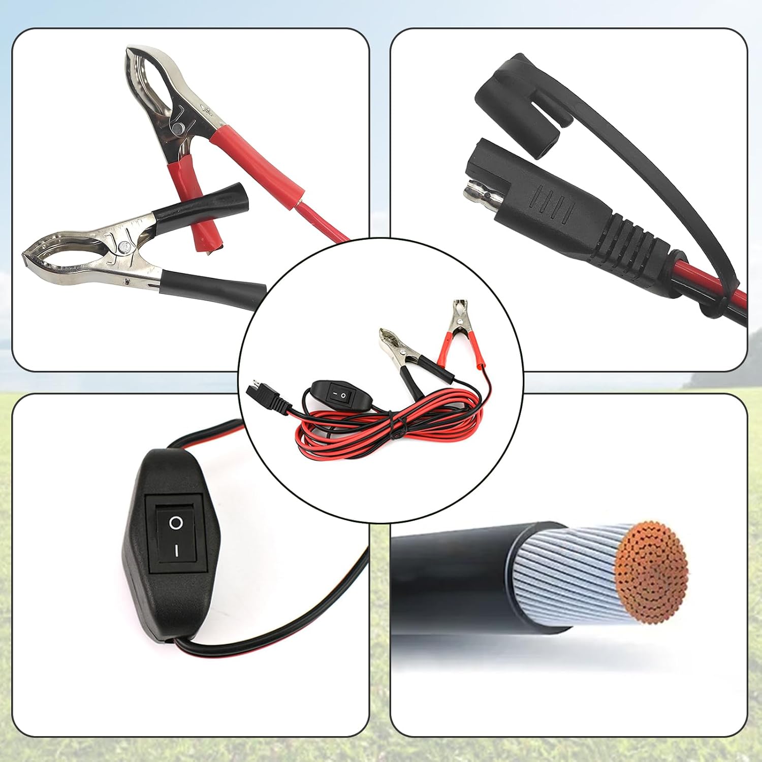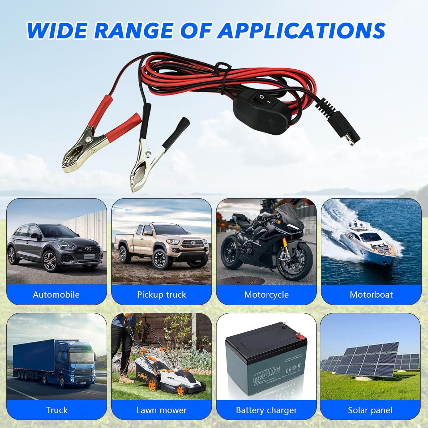 Fiação SAE para Clips Jacaré com Interruptor On/Off 12V/24V – Cabo de Extensão Rápido para Bomba, Moto, Carro, Bateria Solar, Ideal para Pulverizadores de Jardim e Gramado