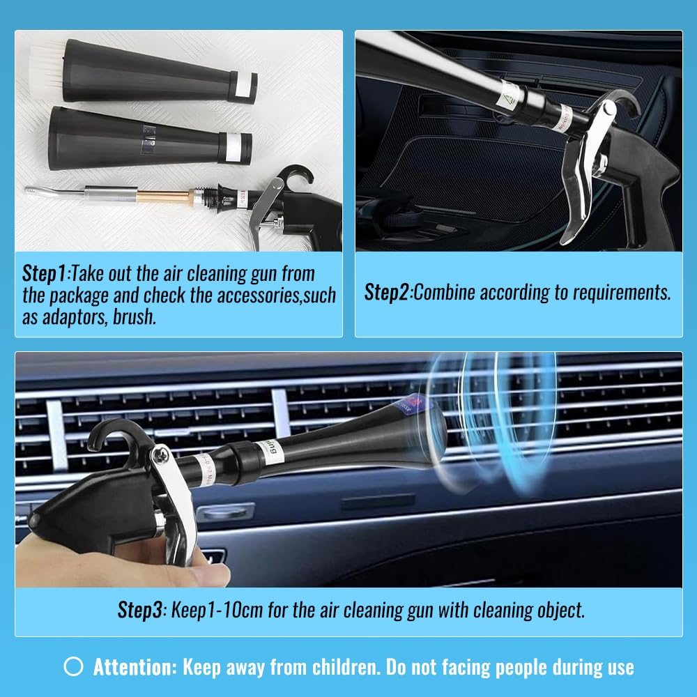 Pistola de Limpeza a Seco Sakerplus Tornado – Secadora de Interior para Carros, Ferramenta de Limpeza de Alta Pressão, Remove Poeira e Sujeira Rapidamente (Preto)